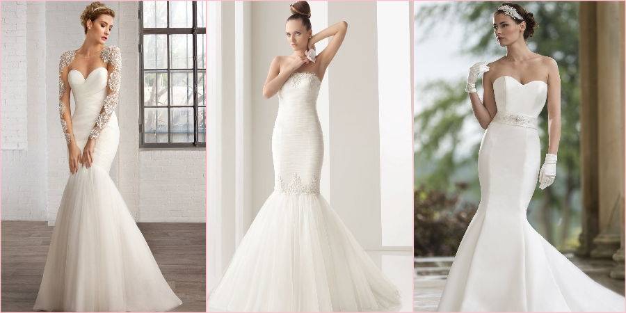 Платье фасона «русалочка» (или более популярное название «рыбка»), способно выгодно подчеркнуть красоту женского тела и его стройность. Такой наряд обтягивает фигуру и бедра, а на уровне колен (или немного выше) имеет пышную юбку. Корсет платья, как правило, расшит камнями, жемчугом или бисером. Платье может иметь рукава, а может полностью открывать декольте и плечи.