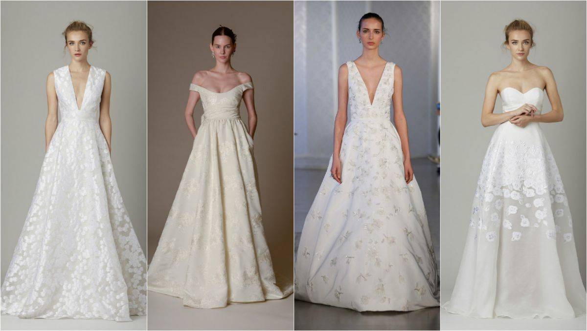 Свадебные дизайнеры представляют вниманию невест различные фасоны платьев описываемой модели. Выбирают конкретный, ориентируясь на особенности внешности, сценарий торжества, сезон, а также костюм жениха: