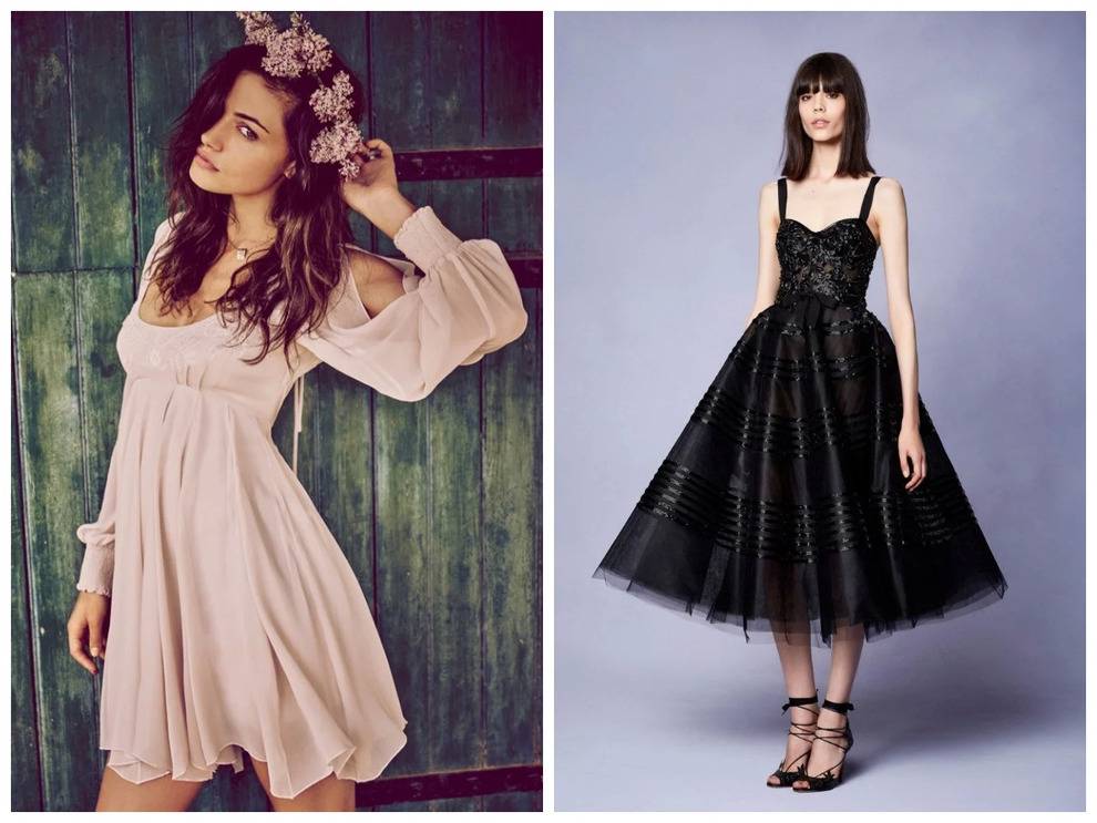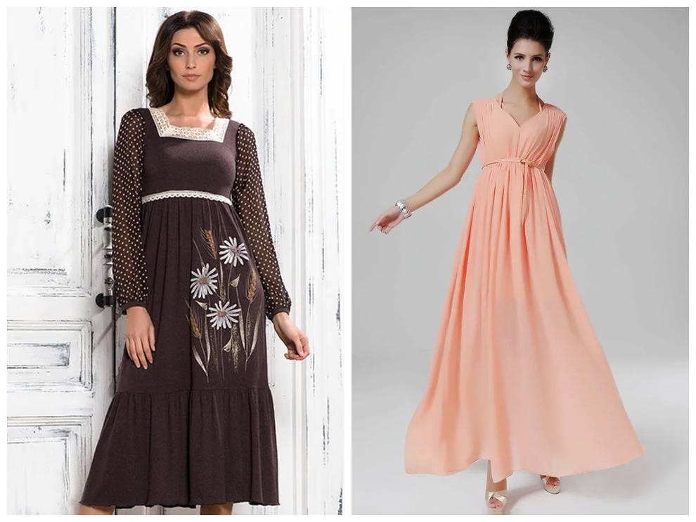 В качестве вечернего платья лучше подойдут длинные модели. Менее праздничный вариант – короткие платья. Платья с завышенной талией в зависимости от модели можно надевать как с тонкой шпилькой, так и с обувью на платформе или танкеткой.