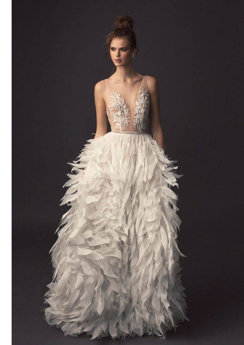 Юбка. Основной элемент свадебного платья – юбка. На ней стоит сделать главный акцент: длинная, ниспадающая, многослойная, играющая на ветру или от любого движения невесты, – она станет главной частью вашего богемного наряда. Но имеет место быть и ассиметричная юбка. Открытая спереди и удлинённая сзади, она даст вам больше свободы движения на торжестве. Свадебный наряд с ассиметричной юбкой – это очень экстравагантный выбор. Такие образы выглядят по театральному ярко и драматично. А массивный многослойный шлейф придаст образу торжественности.