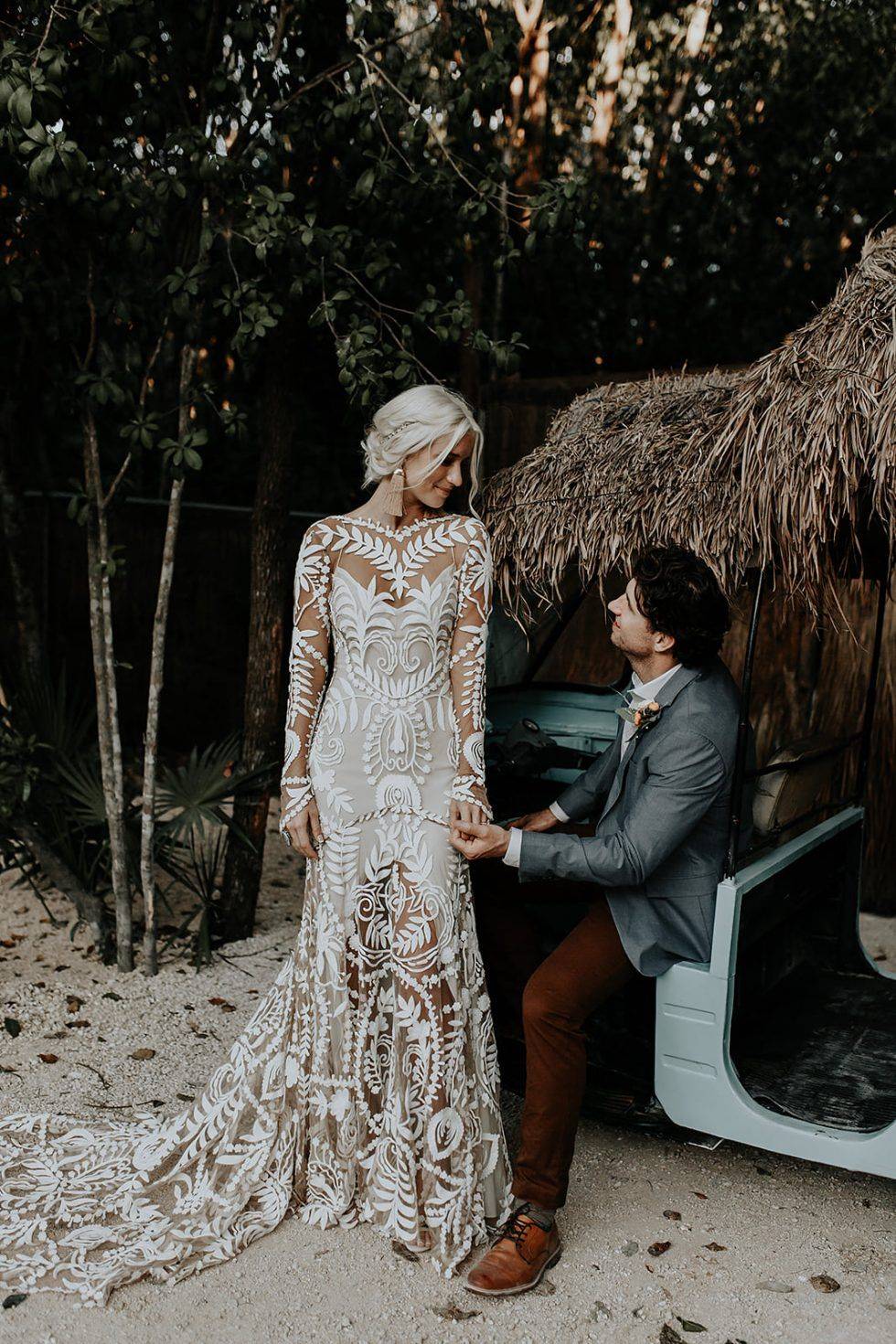Карманы. Современные тенденции лучших стилей для свадьбы преследуют идеи эргономичности. Появление карманов в нарядах для невесты – актуальный тренд и для богемного стиля. Необычная для свадебного облачения деталь нашла себя в стиле бохо и является прекрасным дополнением образа непринужденного шика. Ведь свадебное платье бохо – это уникальное совмещение народных мотивов, готического стиля и элементов цыганской атрибутики.
