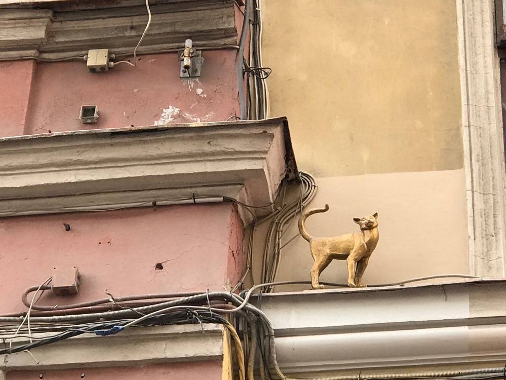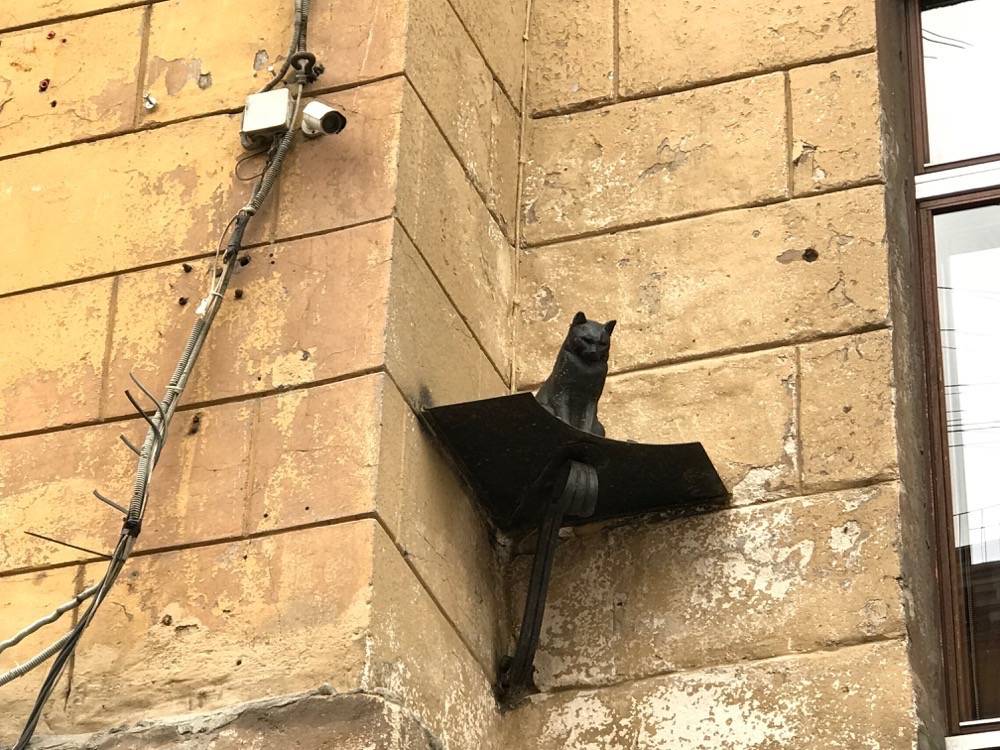 На Малой Садовой были обнаружены котики Елисей и Василиса, в которых принято кидать монетками на удачу. Забросить монетку к Елисею было не самой простой задачей, но раза с пятого-шестого мне это удалось.