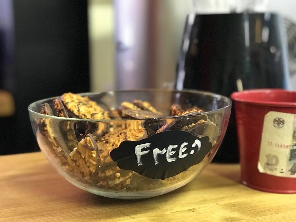 На Невском проспекте недалеко от Дома Журналиста и по пути в бар «Мишка» с особой атмосферой и одной очень клёвой фишкой, мы набрели на небольшой гастроном с вкуснейшими бесплатными печеньками внутри и маленькой уличной кофейней снаружи с большим выбором фирменных кофейных напитков. Я не успел сфоткать весь ассортимент, ну а перепробовать его мне бы и недели не хватило.