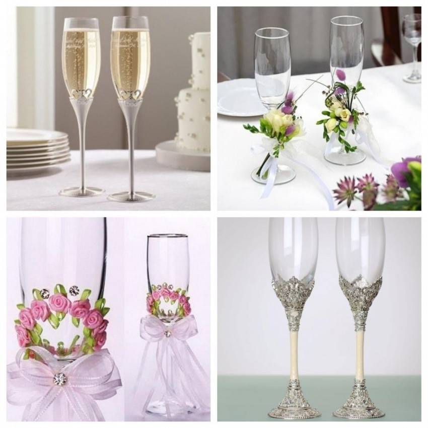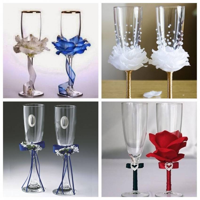 Разновидности украшения свадебных бокалов