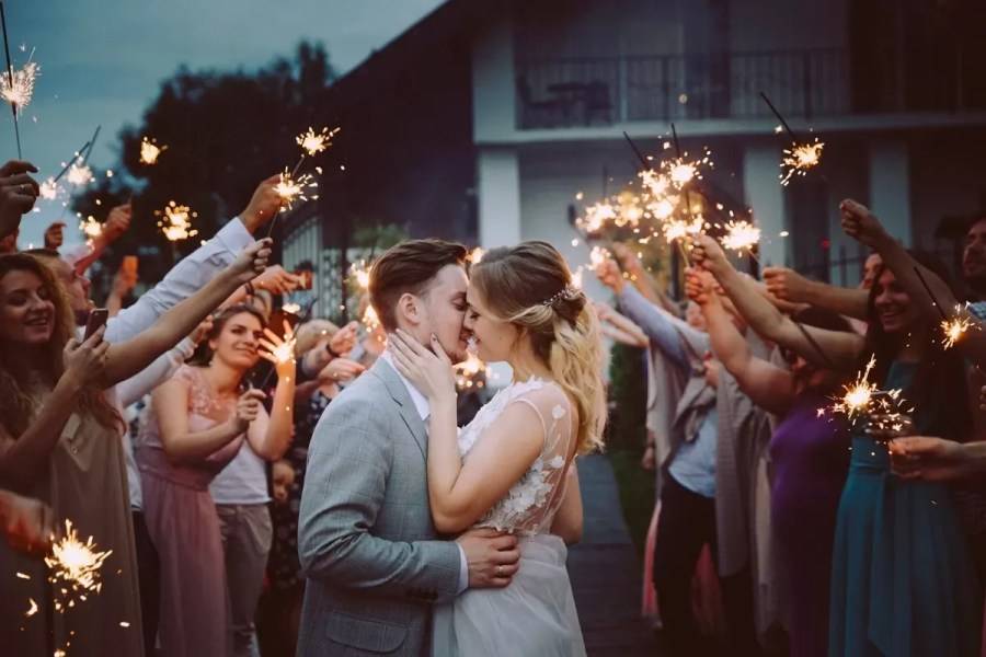 Один из самых популярных вариантов красивого завершения праздничного вечера. По сложившейся в последние годы традиции в финале вечера гости встают в два ряда, держа зажженные бенгальские огни в руках, и сквозь получившийся блестящий «коридор» проходят молодожены. В финале — поцелуй, теплые объятия с друзьями и волшебные фотографии!