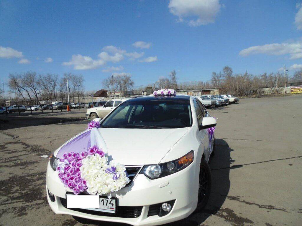 Цветы всегда входят в декорирование мероприятия. Живые цветы на авто смотрятся очень нежно и трогательно. Но учтите, они живые и долго не сохраняют первозданного вида, особенно в экстремальных условиях катания по городу в жаркий сезон. Не размещайте их на радиаторе и капоте. Приемлемый вариант – ручки и зеркала авто, крыша и бампер.
