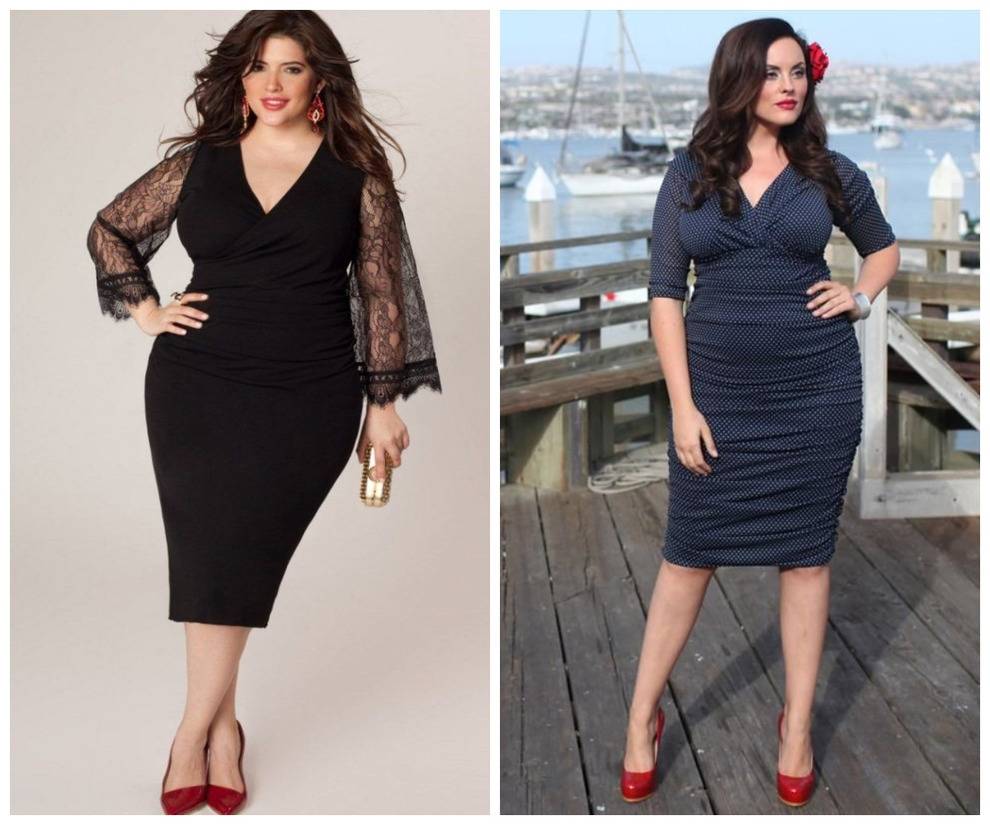 Таким образом, женщина сможет сделать акцент на груди и отвлечь внимание от пышных бедер. Идеально сочетаются такие модели с туфельками на высоком каблучке
