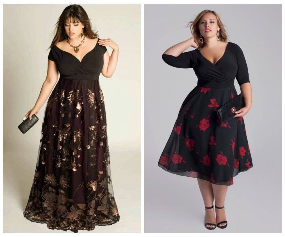 Длинное платье – классика, отлично подходящая и девушкам размера плюс-сайз. Главное — избегать излишне пышных юбок, так как они будут перегружать образ. В то же время, если вы можете похвастаться красивыми ногами, то вполне допустимо выбрать и чуть укороченные модели.