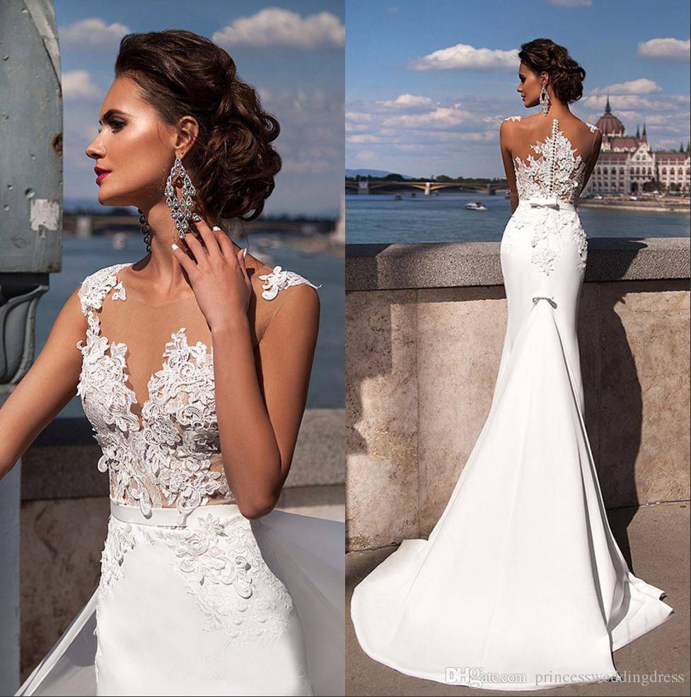 Невеста с точеной фигуркой позволяющей открыть ее гостям и памятным фотографиям, обязана выбрать свадебное платье с прозрачным кружевным корсетом.