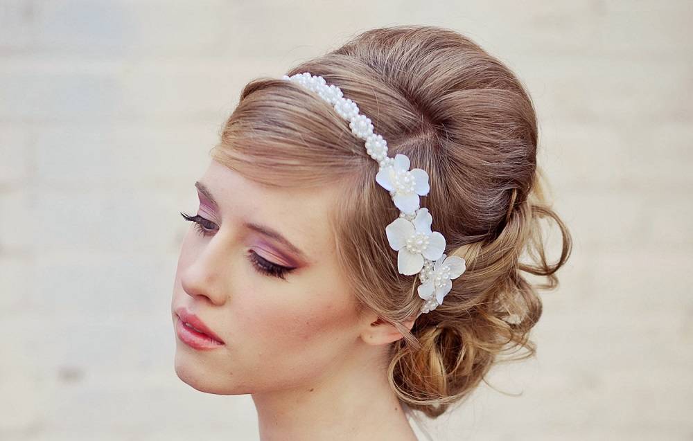 Высокий лоб, узкие скулы и вытянутая челюсть – характерные для этого типа лица черты – поможет замаскировать правильно подобранная прическа для венчания. Хорошо справятся с этой ролью густая челка, локоны в районе висков. Начес на макушке лучше не делать, он вытянет лицо еще больше.