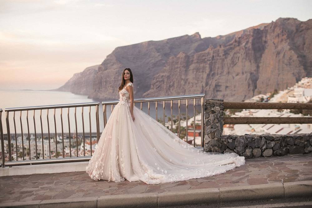 В этом году популярными считаются цвета шампань, классический белый и карамельный. Кружевное свадебное платье со шлейфом прекрасно выглядит в лиловом цвете и оттенке розового кварца. Необычно смотрятся модели, где присутствует яркий колор, который одновременно шокирует и покоряет.
