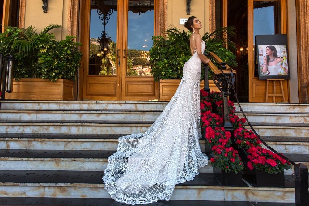 Свадебные платья с открытой спиной и со шлейфом визуально вытягивают силуэт и делают образ благородным. Оголенная спина подчеркивает смелость и отменный вкус невесты. В сочетании со шлейфом эта декоративная деталь обеспечивает гармоничный баланс между сдержанностью и сексуальностью.