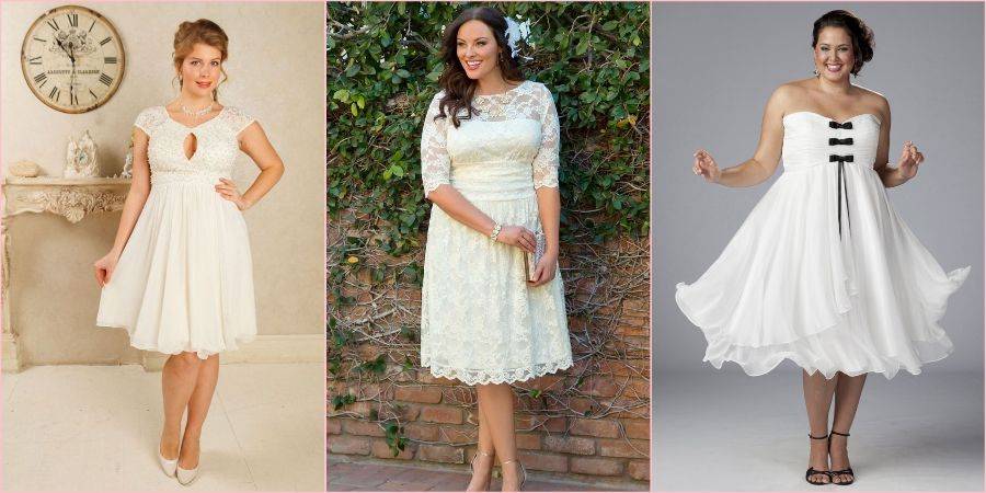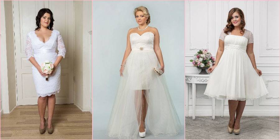 - новобрачным с лишним весом стоит отказаться от мини, а отдать предпочтение асимметричным юбкам, которые визуально сделают ножки стройнее и длиннее.