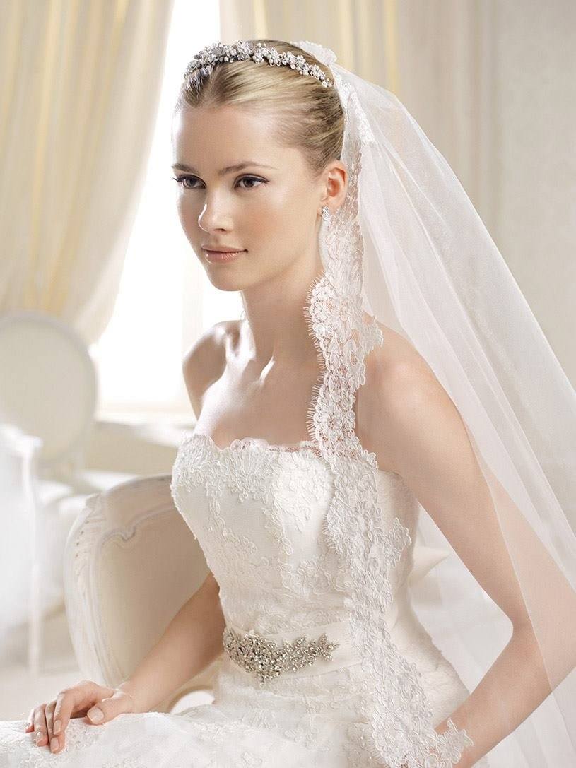 Причёску для невесты необходимо подбирать, учитывая вид фаты, её длину и количество ярусов. Существует много разновидностей этого свадебного атрибута:
