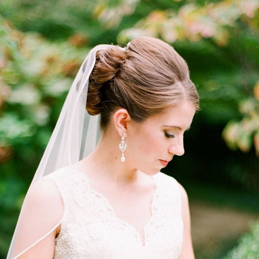 - Фата может быть одноярусной, к ней подойдут простые и лаконичные причёски в европейском стиле.