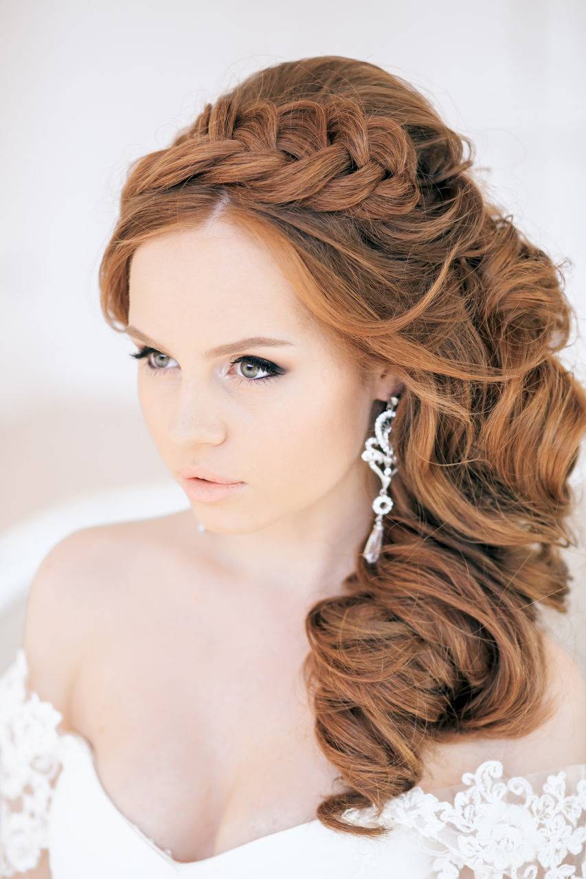Тонкая косичка в копне шикарных локонов придаст нежный и романтичный вид любой невесте. Такой вариант подойдёт для свадьбы в рустикальном или романтичном стиле.