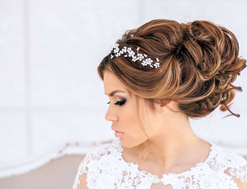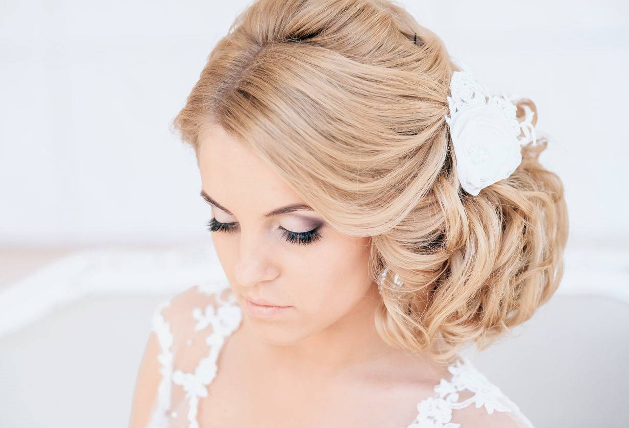 Специалистам известно около 20 вариантов завивок, но наиболее выгодно на свадьбе смотрятся классические кудри, крупные локоны и гламурная укладка в стиле Голливуда. Фата, как правило, крепится на начес, тем самым не нарушая целостности красивых локонов (начес может быть разного объема в зависимости от желаемого результата).