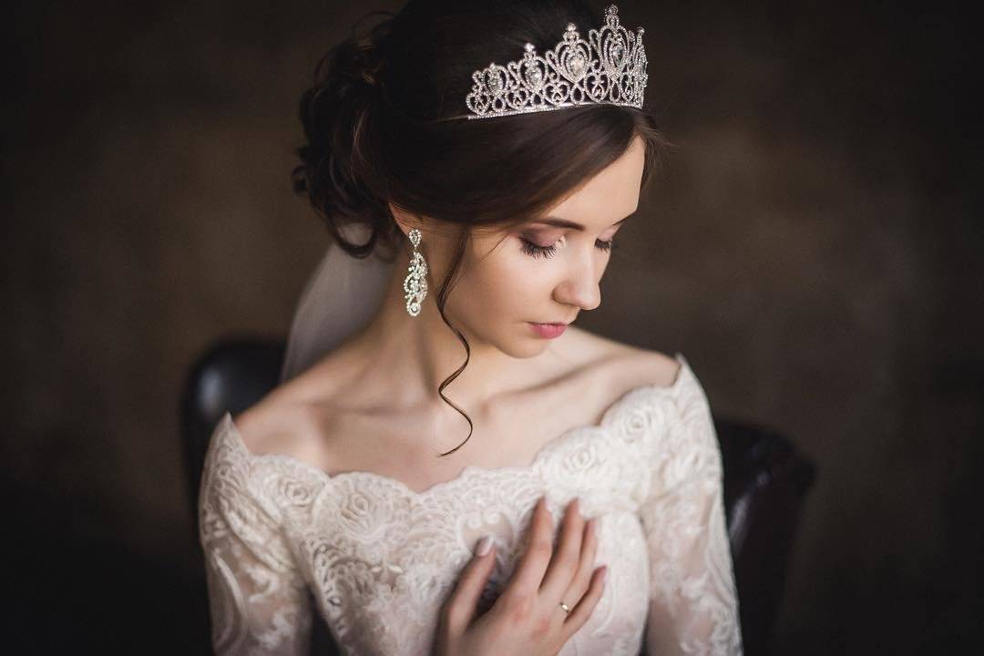 Подчеркнуть шикарный свадебный образ поможет корона. Этот аксессуар достойно смотрится в сочетании с пышным платьем из дорогой ткани.