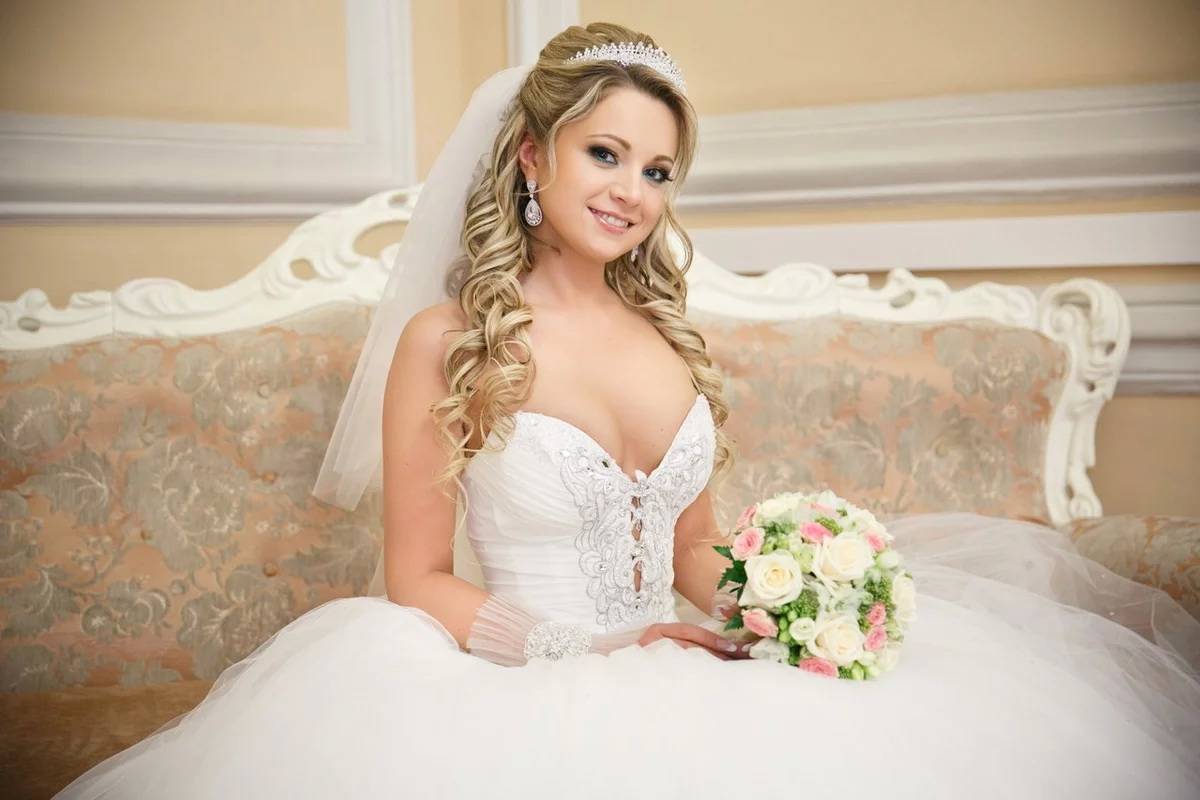 Это неважно, главное, правильно подобрать прическу под свой свадебный образ. Существует множество вариантов праздничных укладок