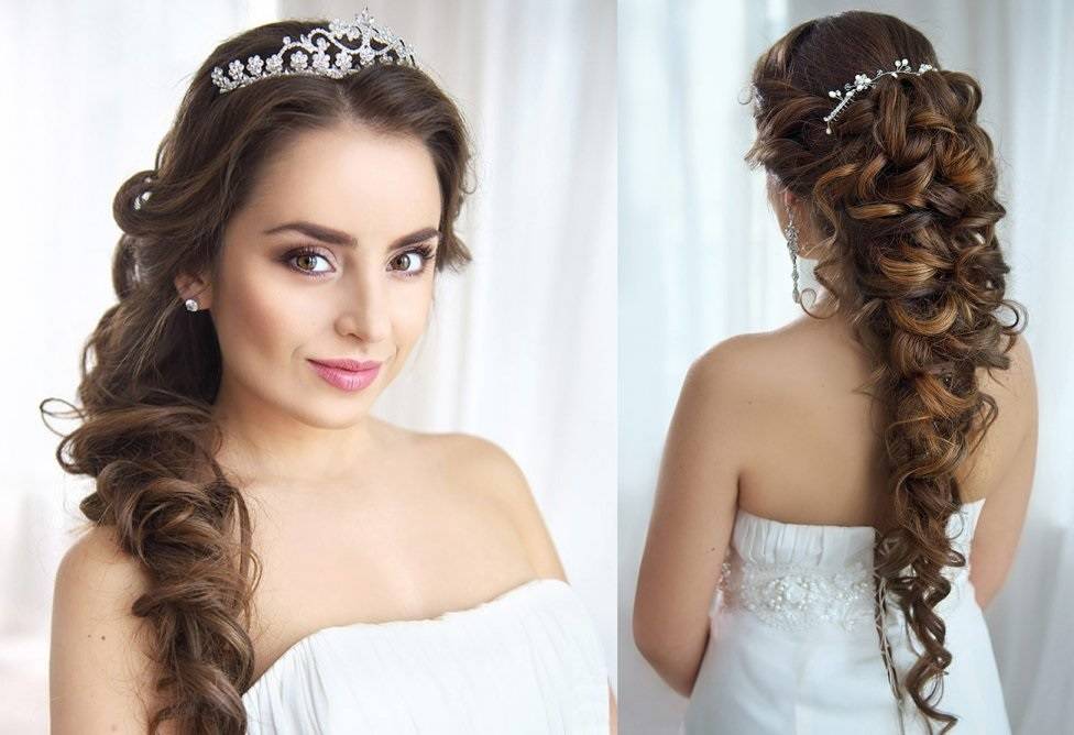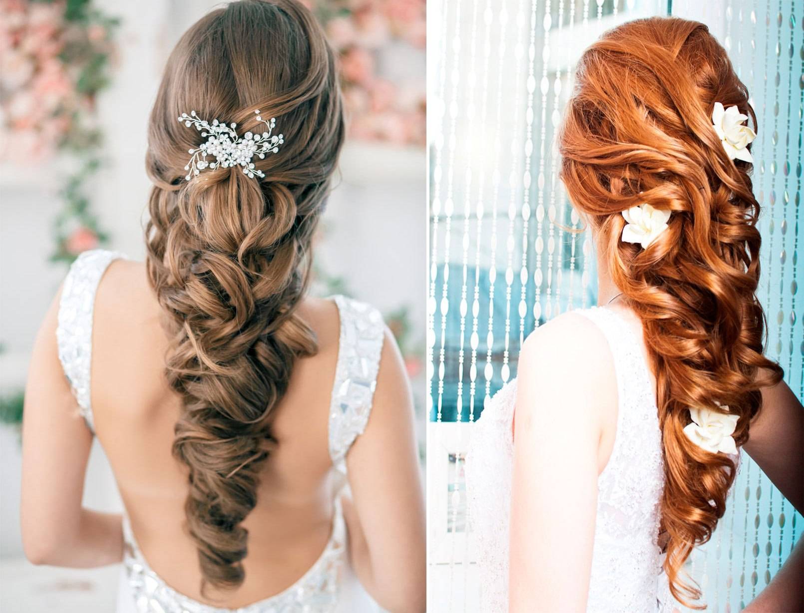 Представительницам средних и длинных волос повезло, они могут, что угодно делать со своими локонами. Многие предпочитают их накручивать. Для свадебного торжества этот образ придется как раз кстати.