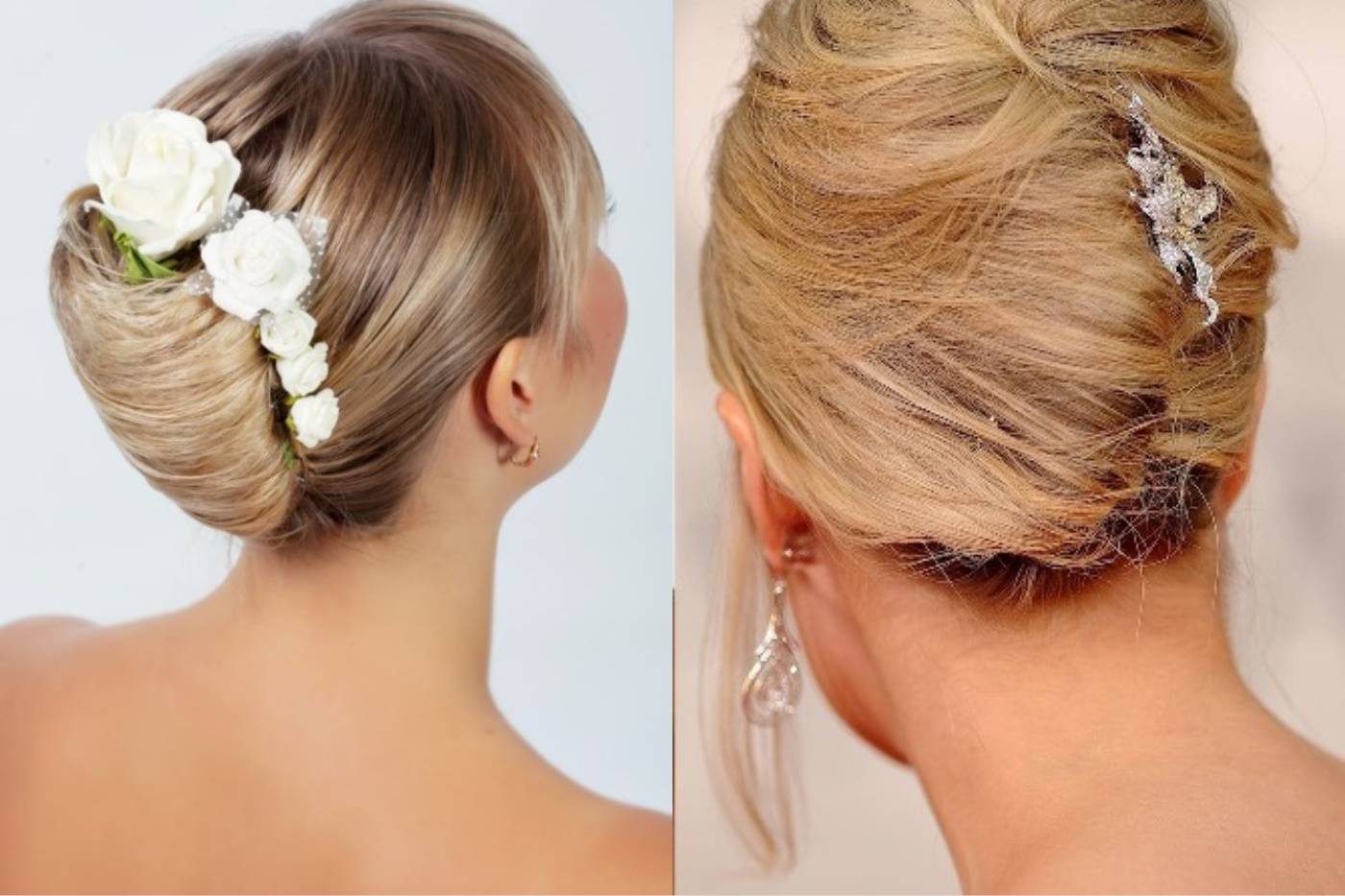 И так как это не просто торжество, а свадьба, то в качестве украшений на волосы можно прикрепить украшения в виде камней (страз) или живых цветов.