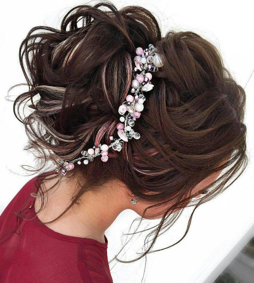 Пучок удобен тем, что продержится на голове в аккуратном состоянии все торжество. Кому-то может показаться, что данная укладка слишком скучна и невзрачна. Однако никто не отменял творческий подход к выполнению пучка! Пучок можно разнообразить с помощью красивых заколок и ярких шпилек. Еще большую женственность и нежность придадут пряди, выпущенные наружу. А разнообразить его помогут кудри, плетение и разные способы оформления.