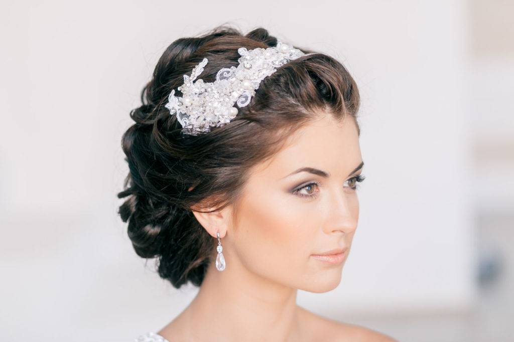 Высокие прически с челкой не в тренде. Невестам, решившим собрать пучок на макушке, стилисты рекомендуют убрать челку. Сделать это можно с помощью ободка, диадемы, короны.