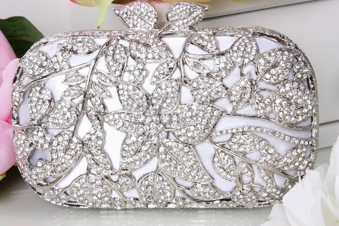 Например, к короткому наряду подойдёт аксессуар из кожи, но в сочетании с соответствующими туфлями. Не упустите тот момент, что свадебные сумочки для невесты украшать лучше теми же стразами или цветами, что и платье. К скромному наряду желательно сделать яркий аксессуар. Цвета подбирайте пастельные, золотистые или серебристые. Стиль должен быть единым и сочетаться с серьгами, колье, фатой или диадемой.
