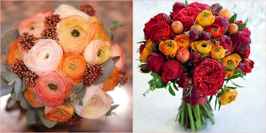Лучшие варианты цветов для сочетания с ранункулюсом: