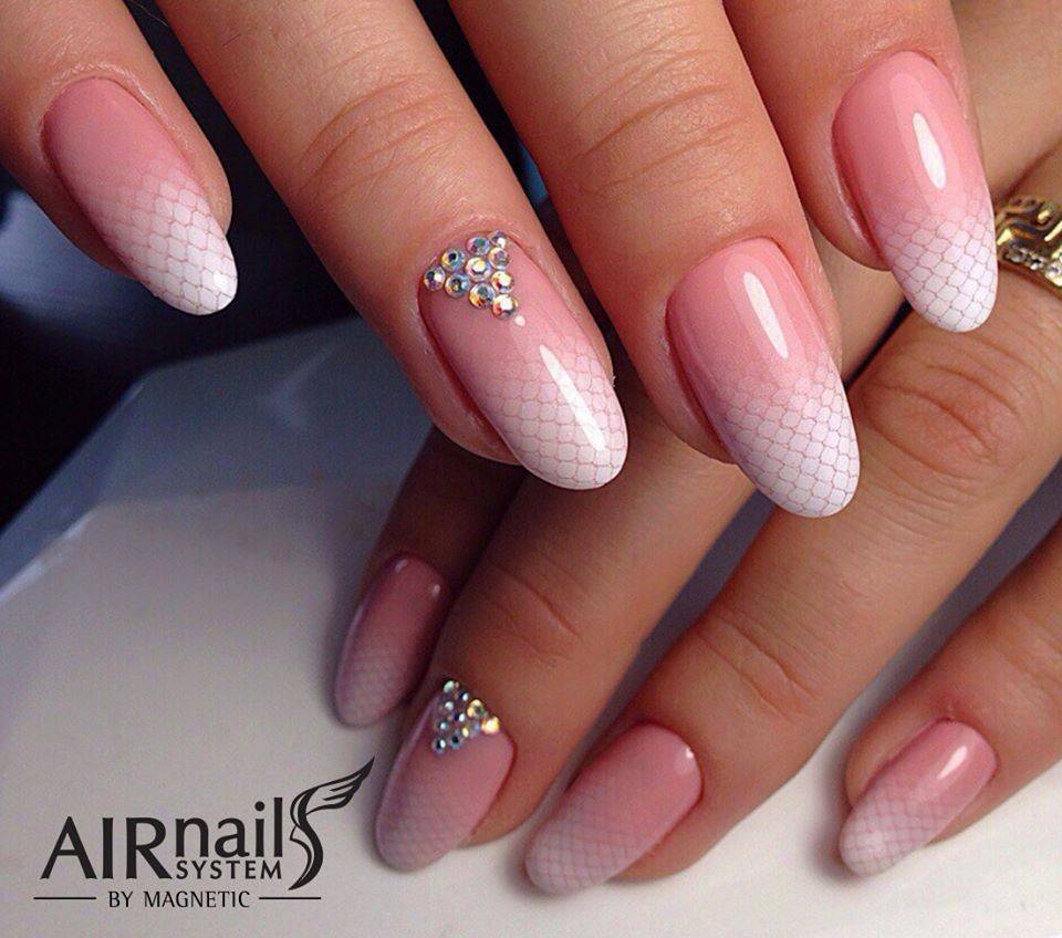 Обычно он дополняется кружевными узорами, флористическими мотивами, художественной росписью, стразами. Такой вариант всегда популярен, так как отличается скромностью и изяществом. Такой маникюр идеально подходит для длинных и средних ногтей. Классические оттенки – полупрозрачный розовый, бежевый, молочный, нюдовый.