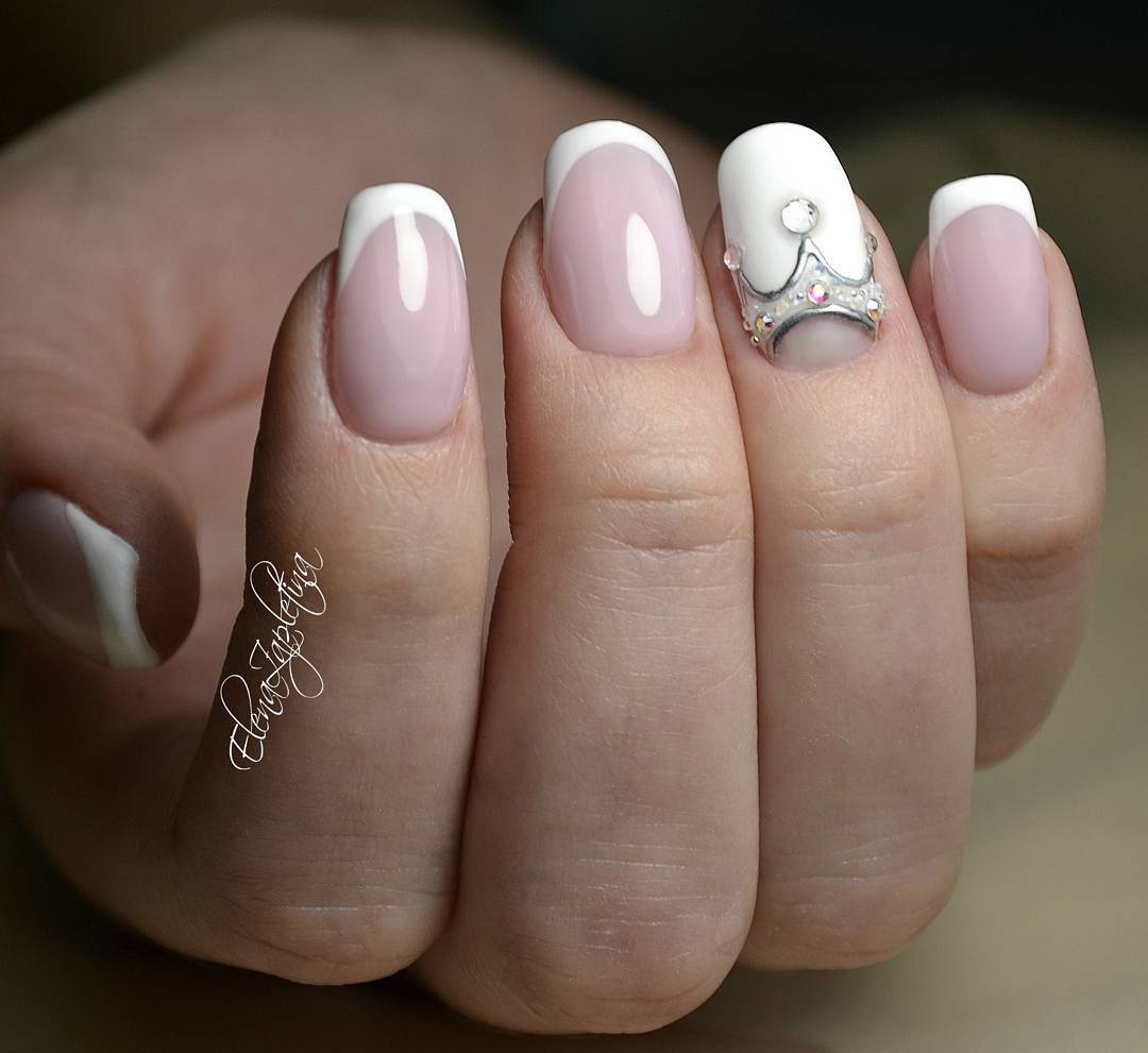 Такой вид маникюра – отличный вариант для свадьбы, т.к. он подойдет к любому свадебному платью.