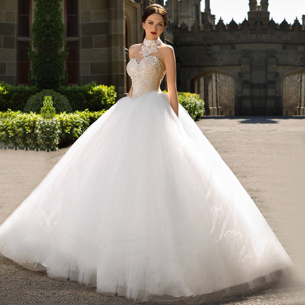В 2017 году пышные свадебные платья будут по-прежнему в моде. Даже если фигура далека от идеальных параметров, тонкую талию можно создать с помощью корсета, а все остальное – скрыть под большой юбкой. Декольтированный вырез визуально удлиняет шею, открывает красивые плечи. Корсет в сочетании с декольте приближает к идеальным формам любую фигуру. Надо только грамотно подчеркнуть достоинства, и скрыть недостатки. Свадебное платье с длинным пышным подолом будет выглядеть роскошно и неповторимо.