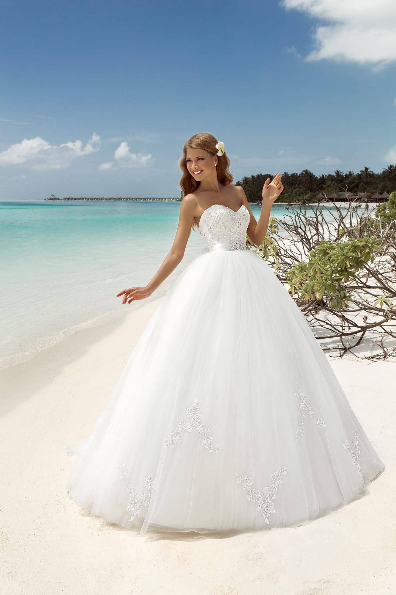 Пышные свадебные платья из коллекции новинок 2017 года (с фото) представлены моделями из разнообразных легких тканей. Ограничений или предпочтений по их выбору нет.