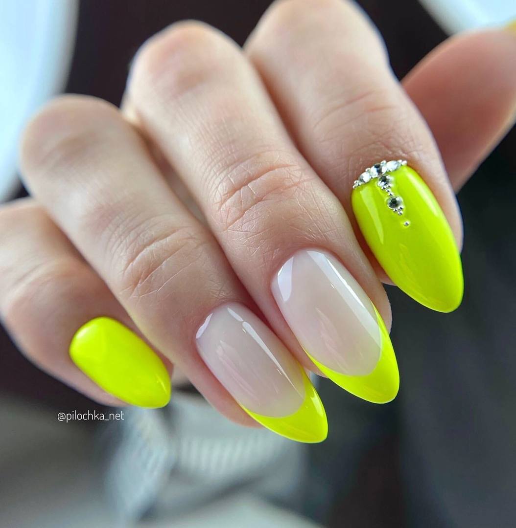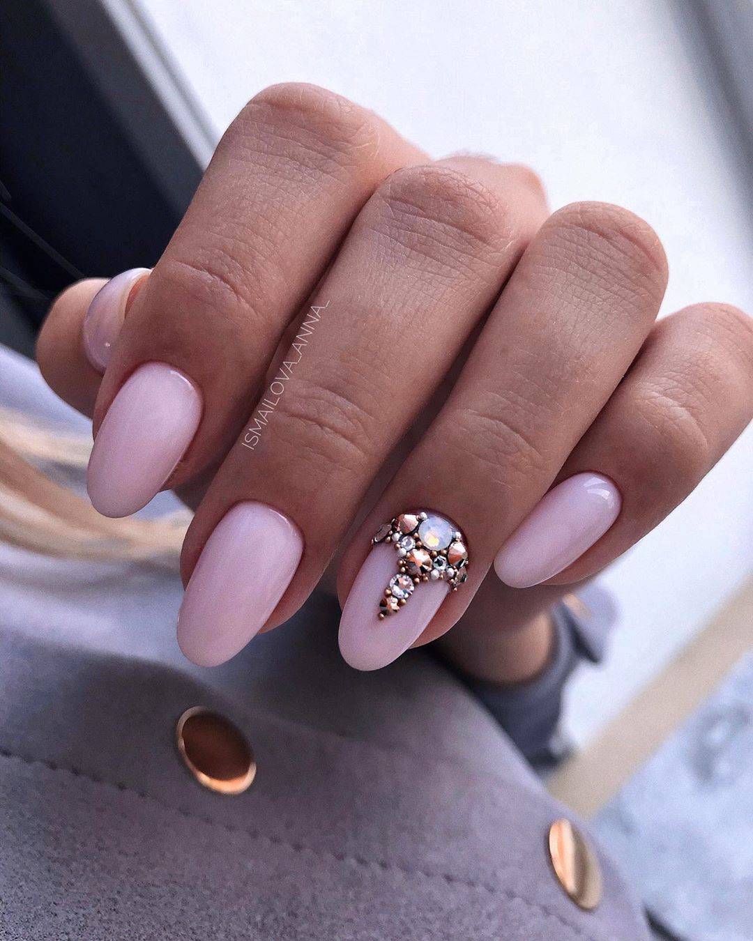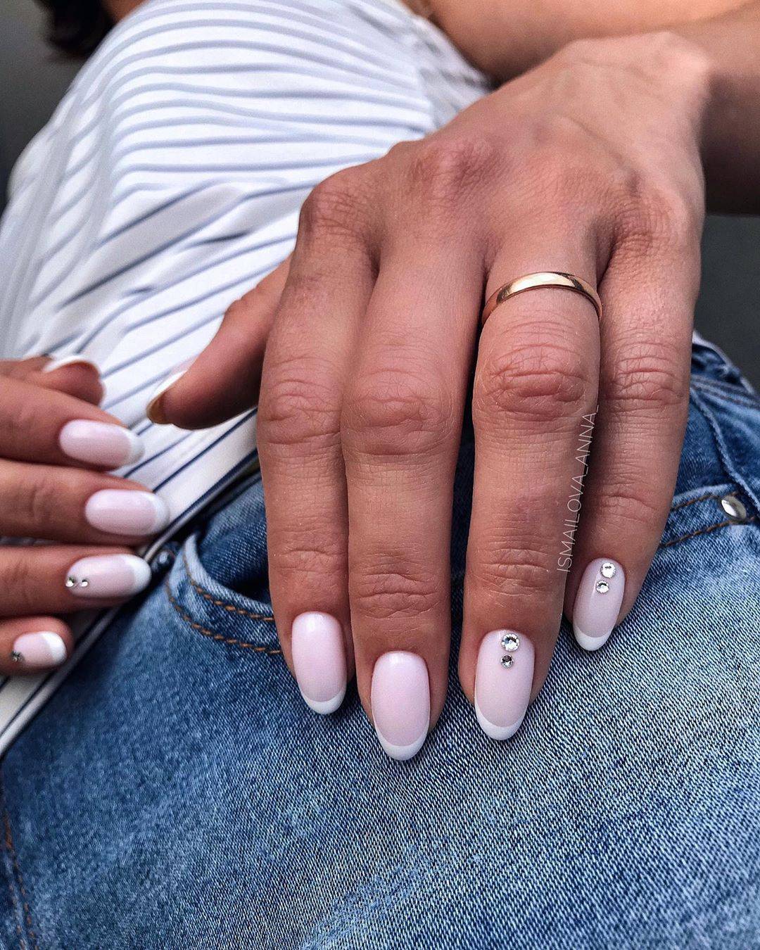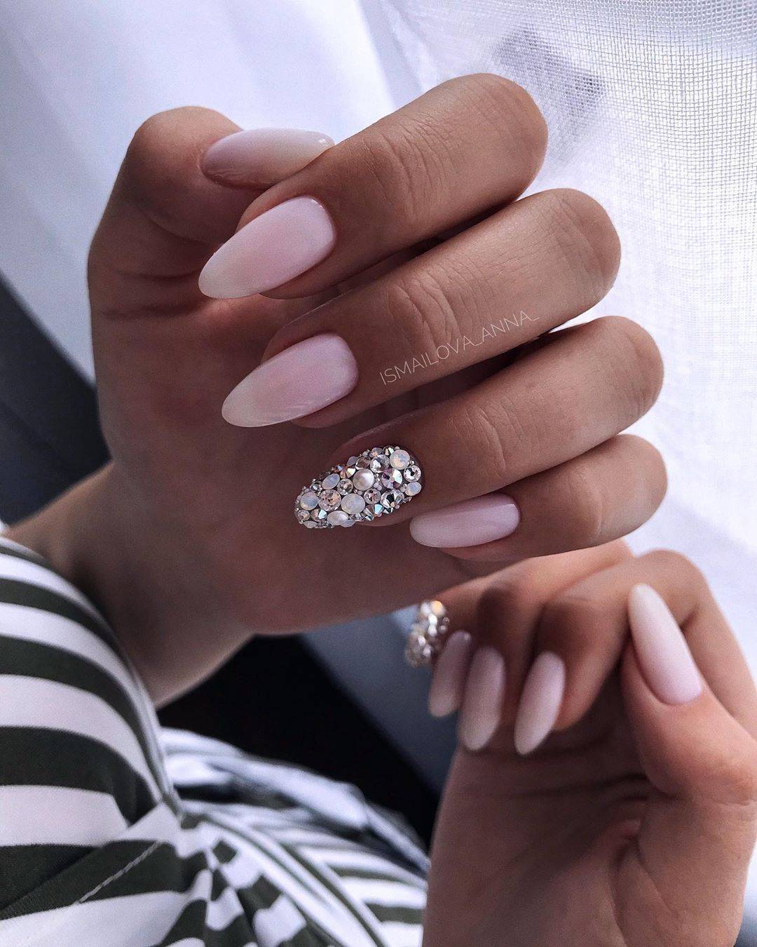 На овальной форме прекрасно получится любой нейл-арт, особенно если вы решили в последний момент заняться маникюром. Выберите свадебный френч с двумя акцентными пальчиками. Примените декорирование камнями с красивой выкладкой.