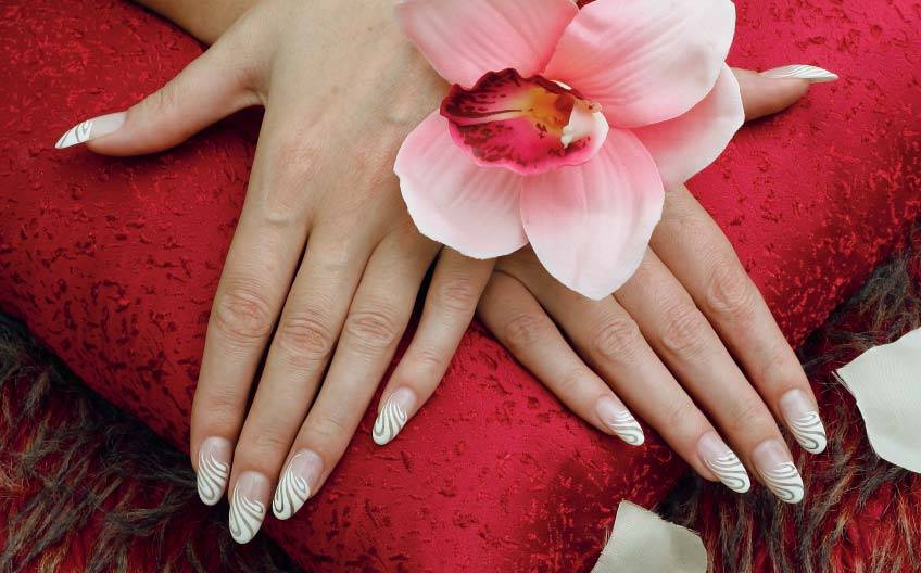 Не смотря на то, что появился новый дизайн ракушка, в котором используется жемчужная втирка для создания эффекта перелива цвета, классический дизайн в белых или пастельных тонах, также имеет место быть. В классическом дизайне орнамент наносится гель-краской или гель-лаком того же оттенка, который использовался для окрашивания самого ногтя. Для нанесения рисунка лучше использовать кисть длинный волосок.