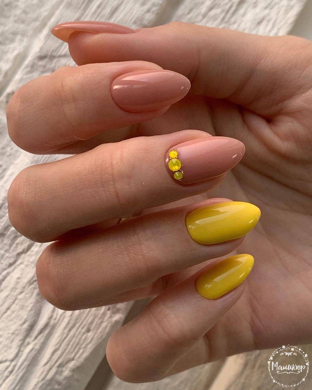 Стразы можно комбинировать с бусинами и камнями. Но помните, что всего должно быть в меру. Излишество декора будет смотреться вычурно и нелепо. Стилисты утверждают, что один ноготь со стразами равен полноценному украшению, поэтому не стоит перегружать образ бижутерией.