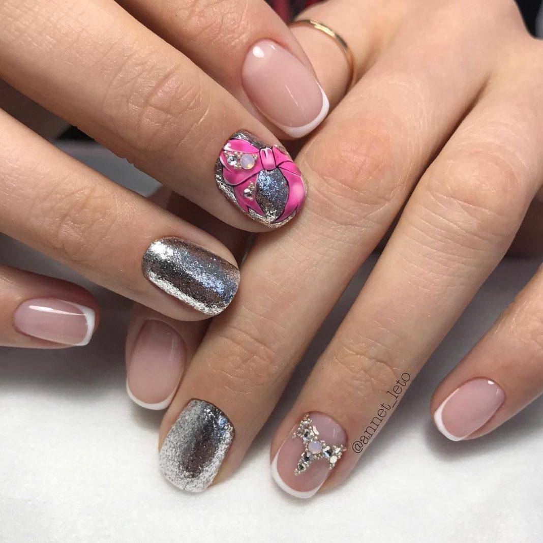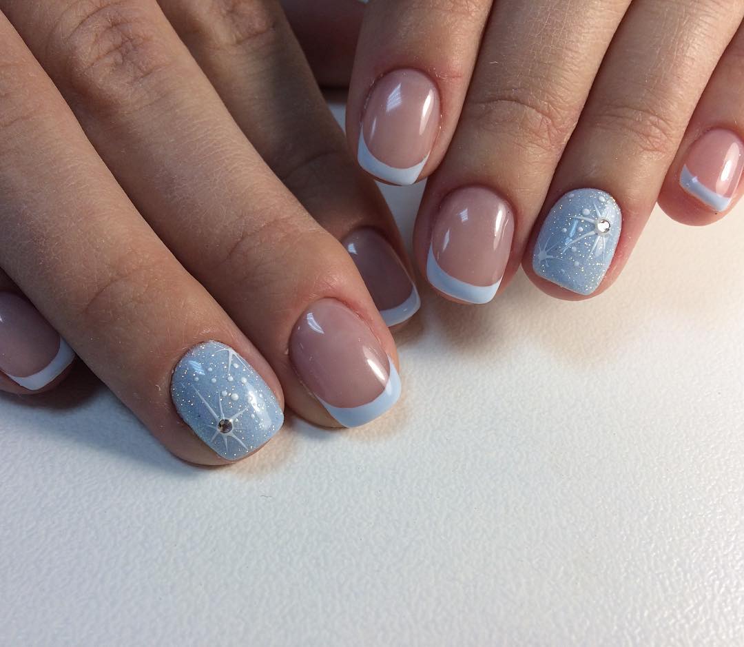 Специально для почитательниц френча, нейл-мастера решили разбавить его другими техниками, комбинируя со стразами, слюдой и иными декоративными элементами.