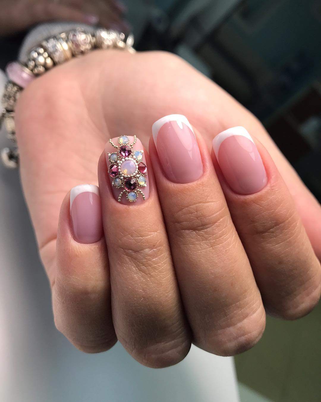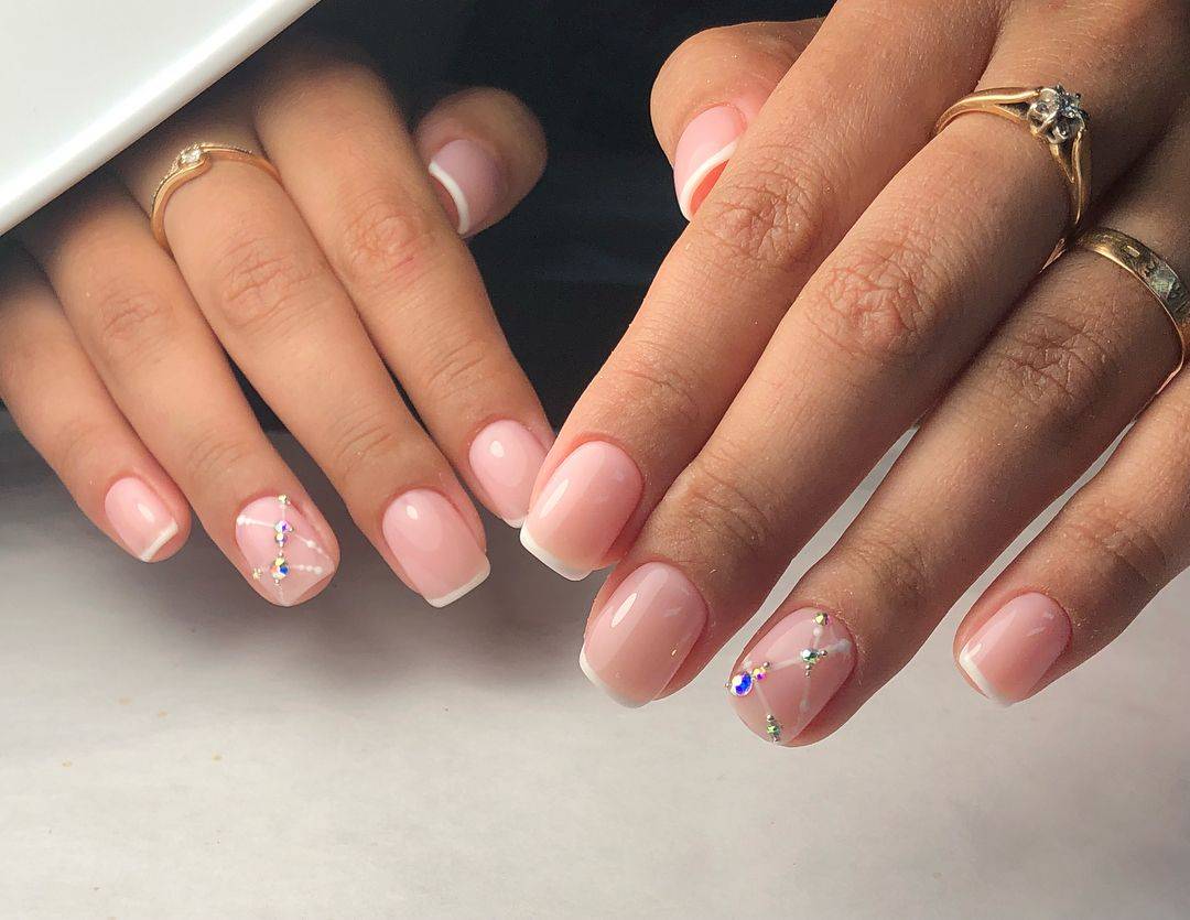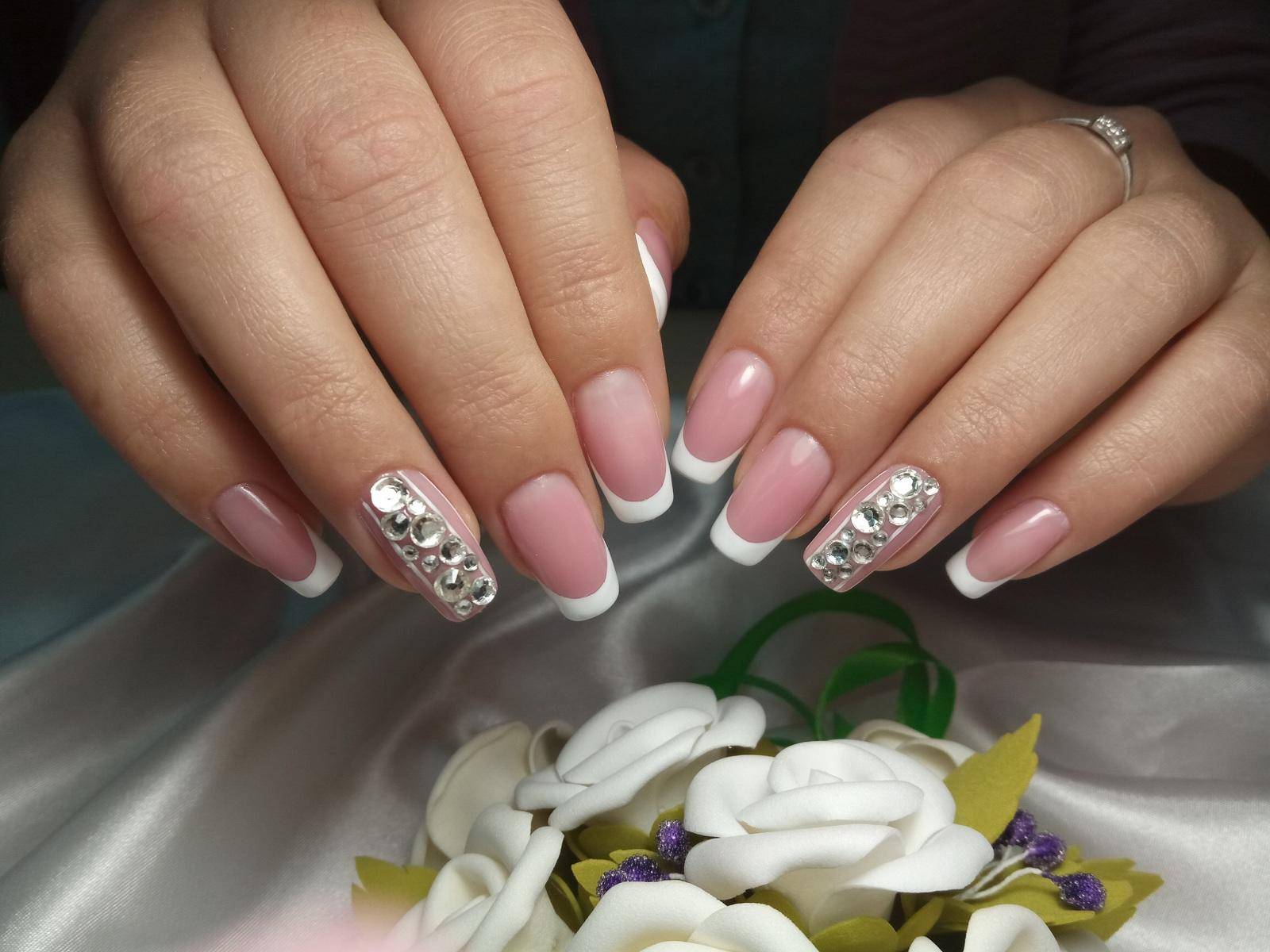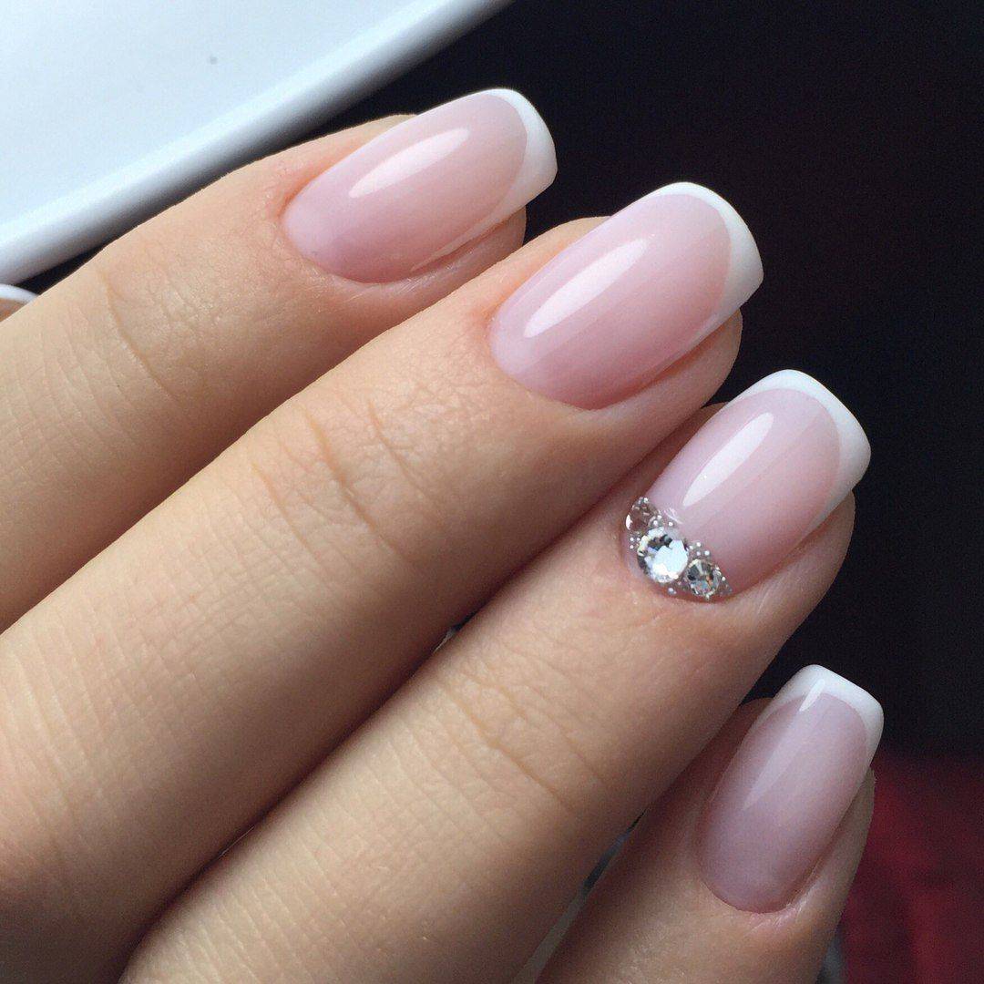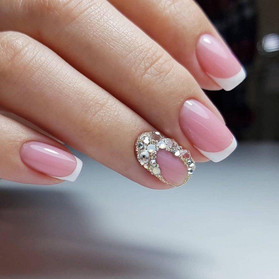 Очень нежно и воздушно смотрится розовый маникюр с френчем или стразами.