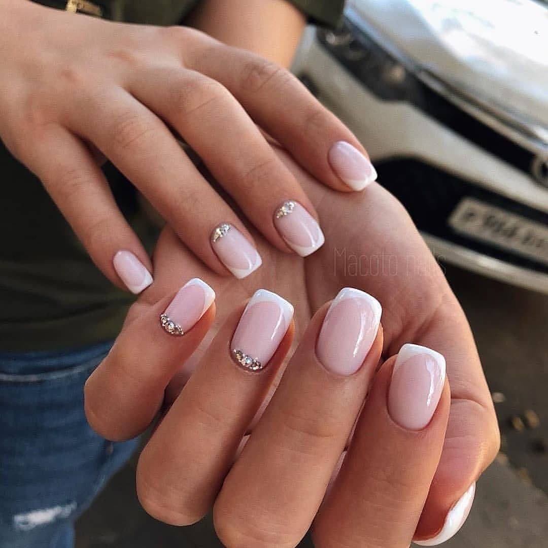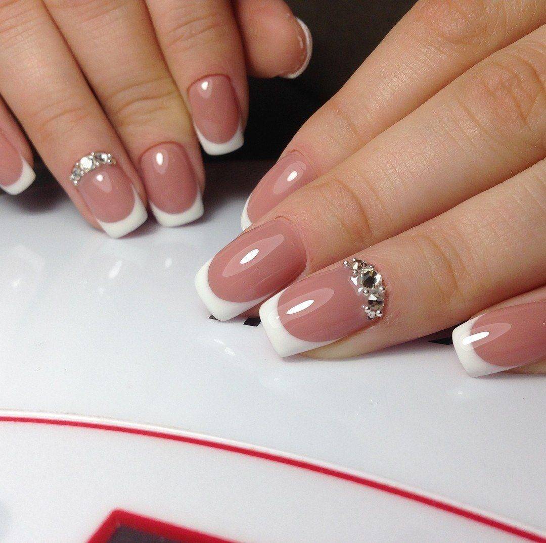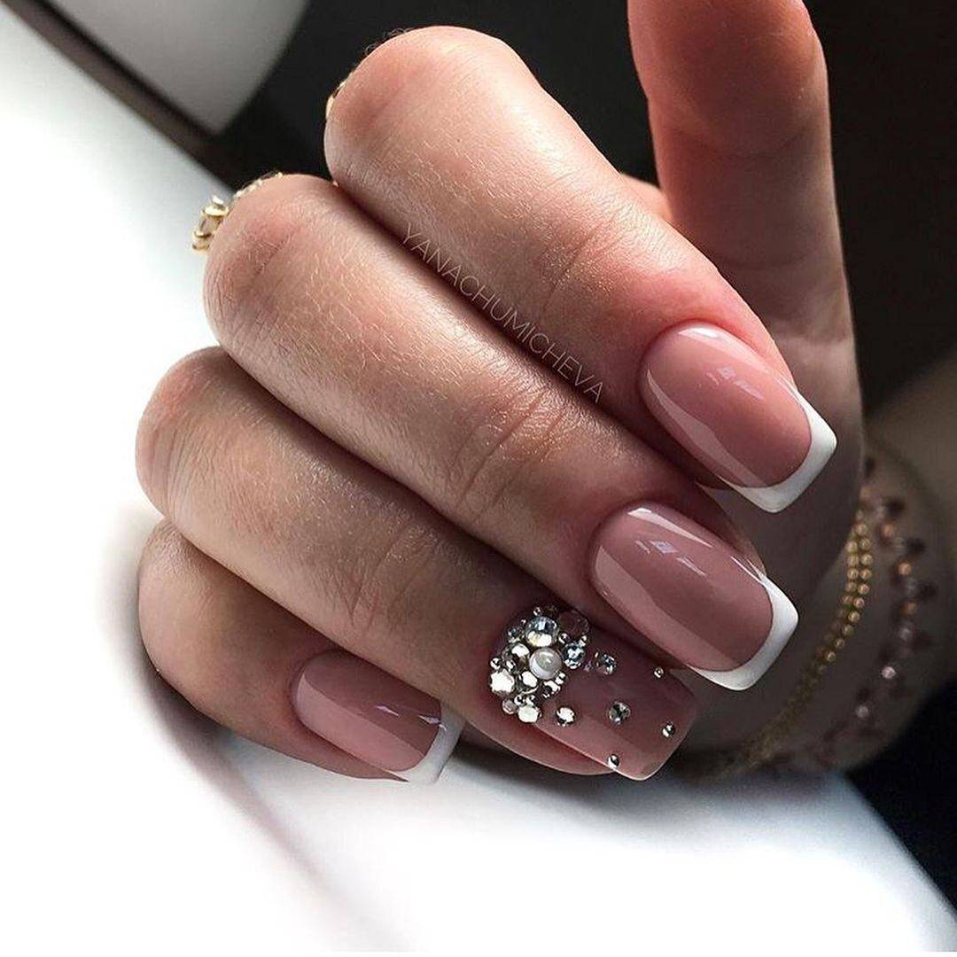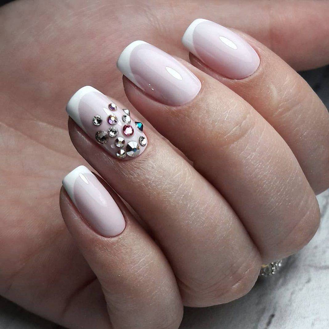 Очень нежно и воздушно смотрится розовый маникюр с френчем или стразами.