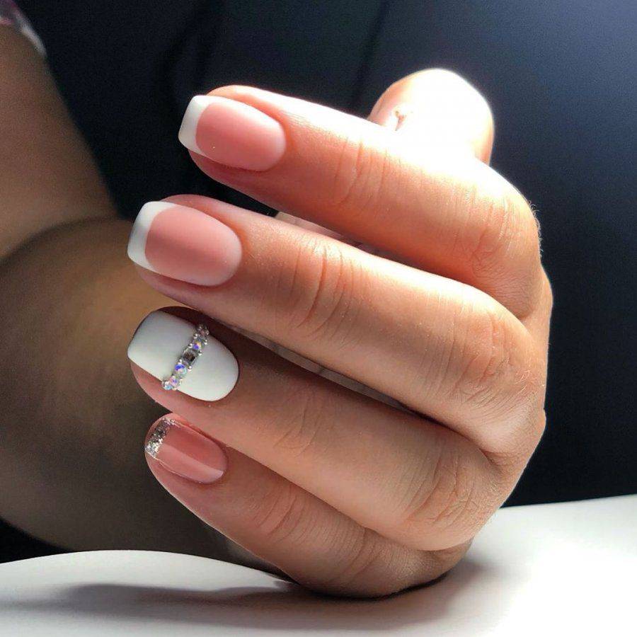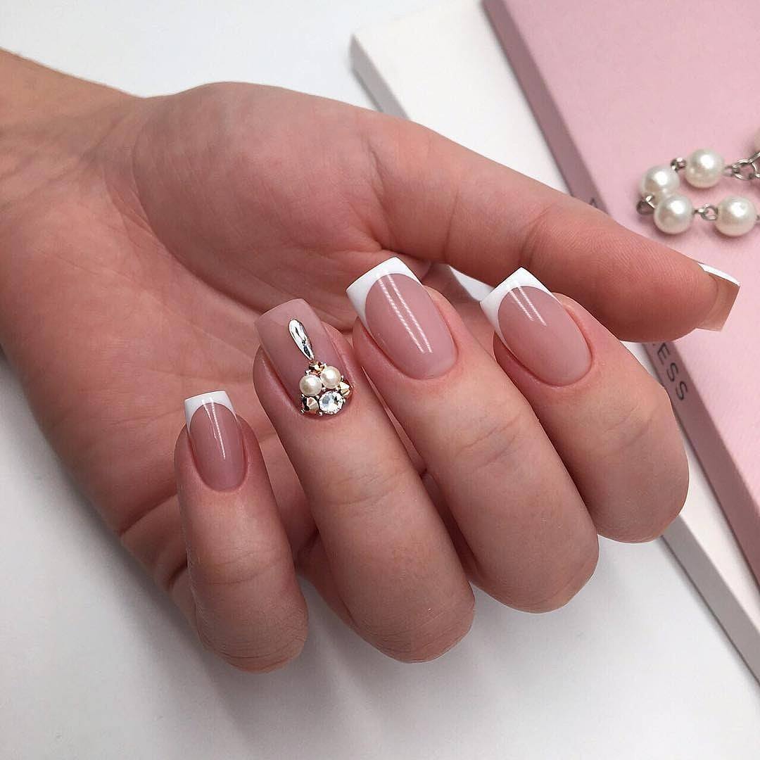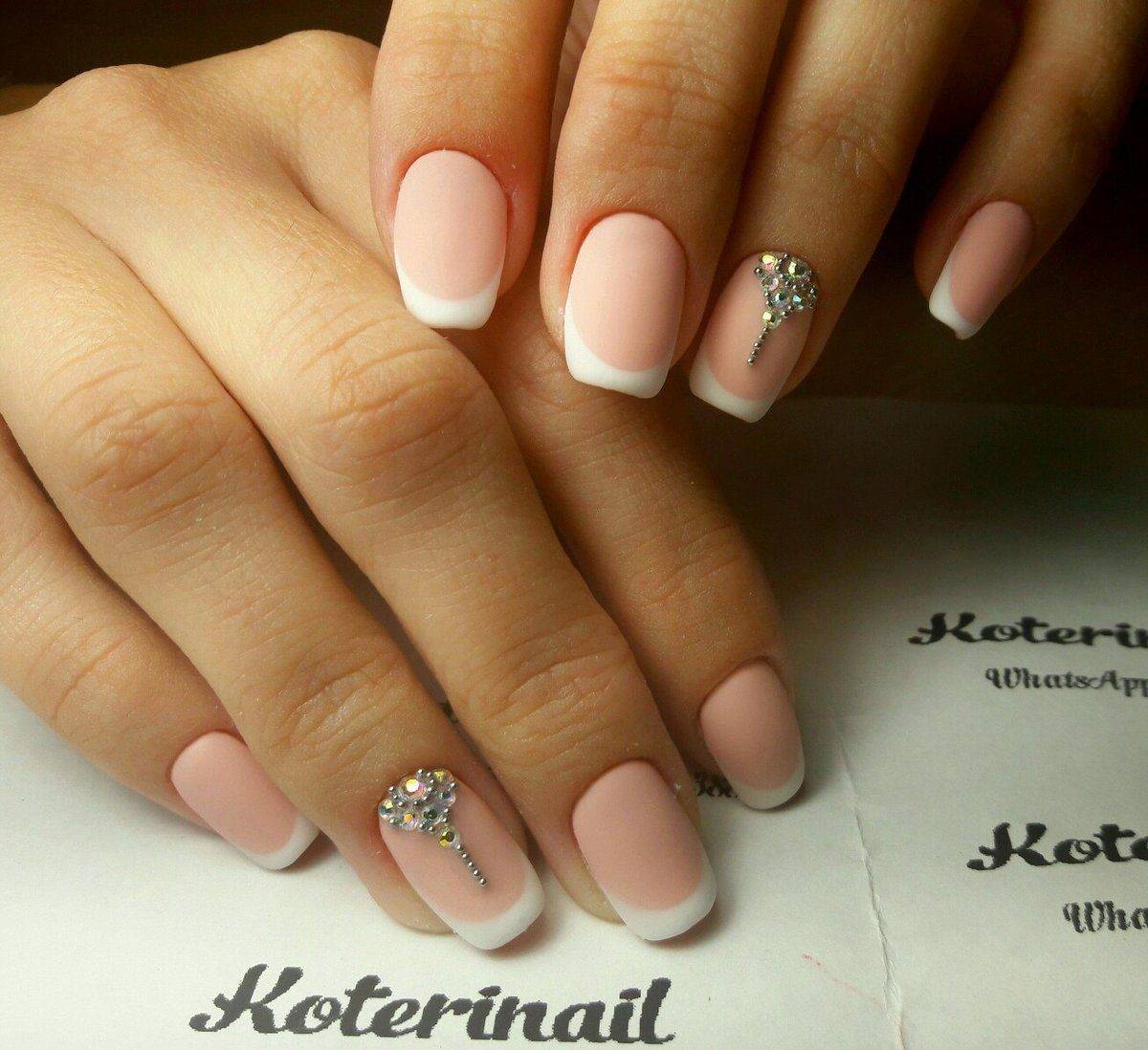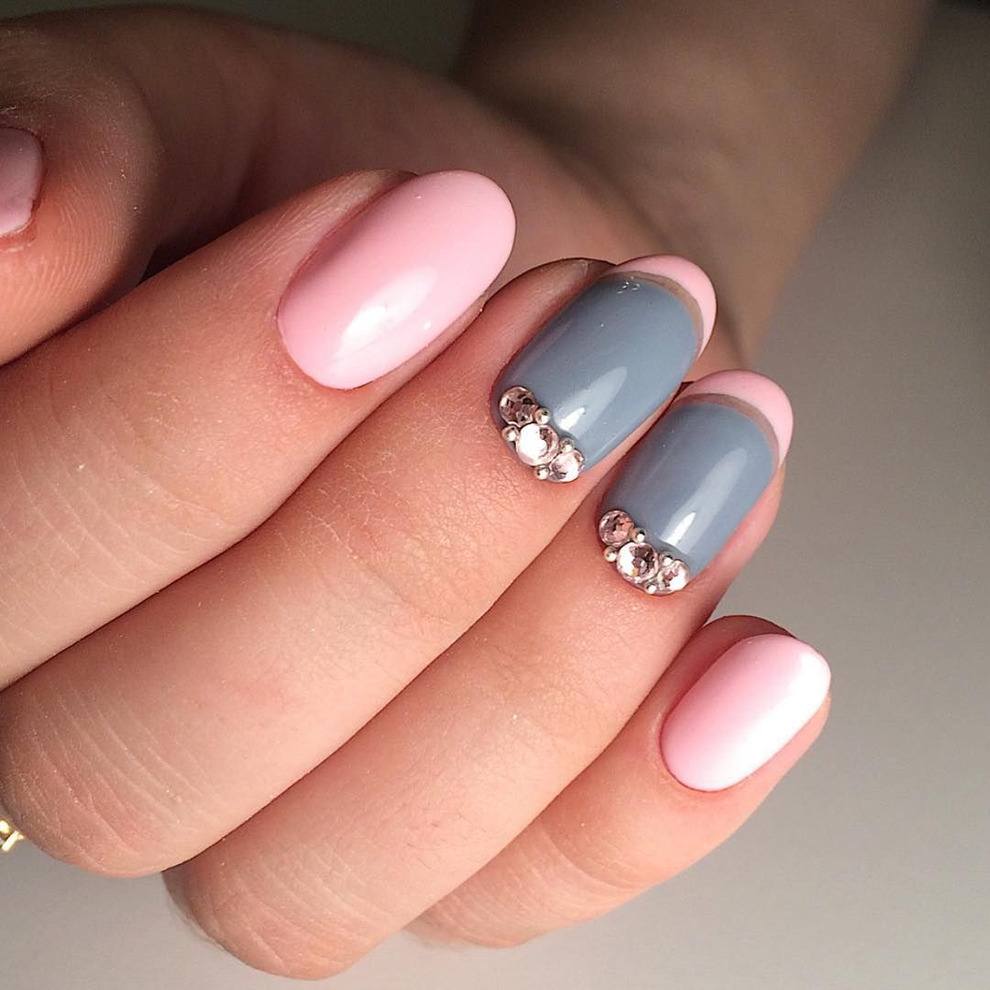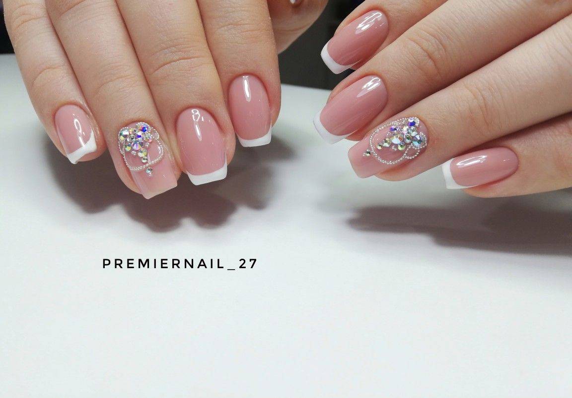 Очень нежно и воздушно смотрится розовый маникюр с френчем или стразами.