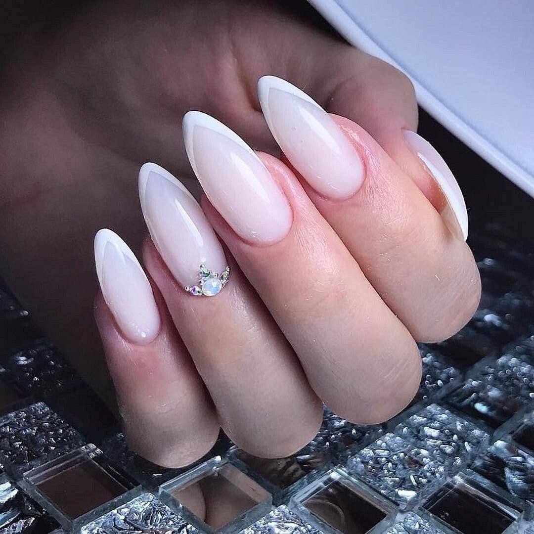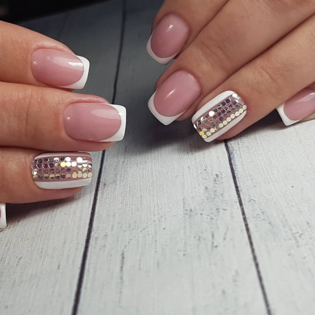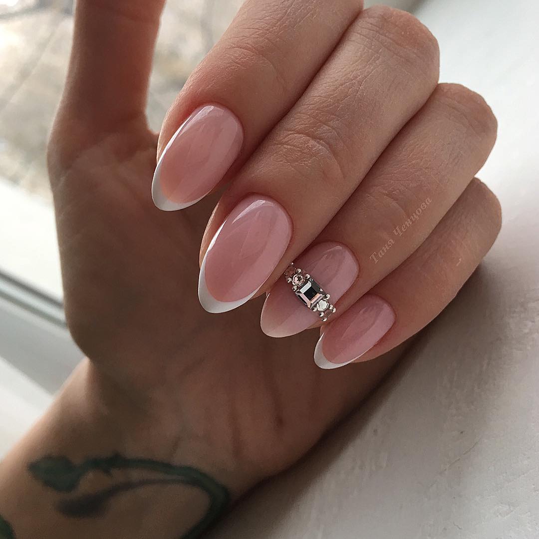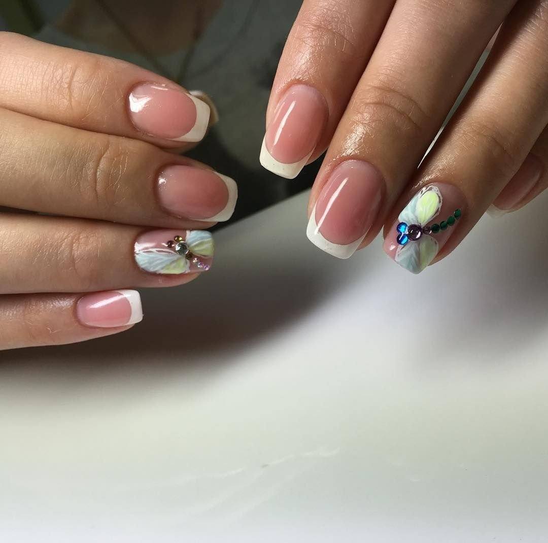 Очень нежно и воздушно смотрится розовый маникюр с френчем или стразами.