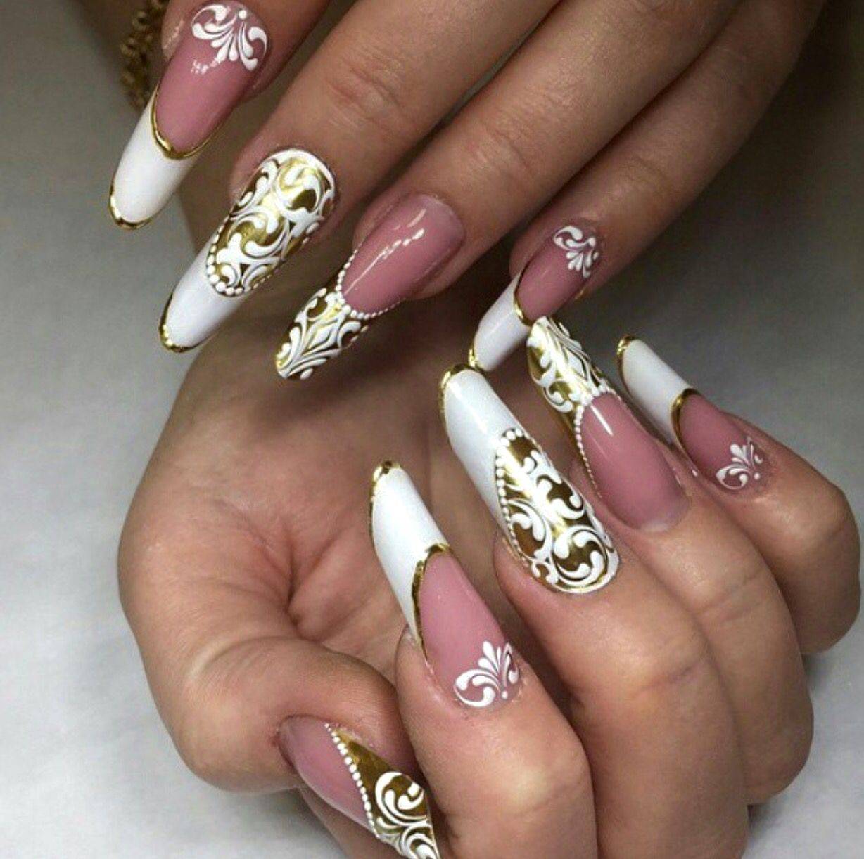 Такой декор можно сделать как на одном, так и на всех ногтях. Красиво он будет смотреться на ногтевых пластинах средней длины или длинных. Хорошо подойдет к платью в роскошном стиле.