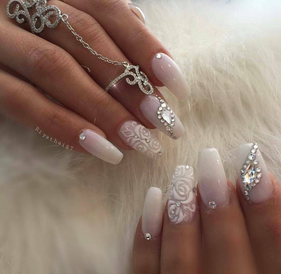 В этом сезоне маникюр для невесты отличается от тенденций прошлого года. Уже не в моде длинные нарощенные ногти с броским декором. Ни в коем случае не наращивайте стилеты.