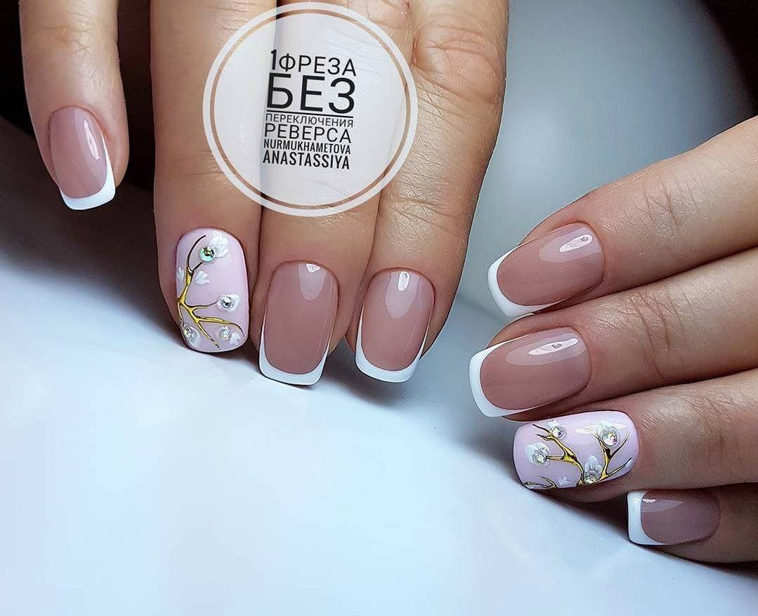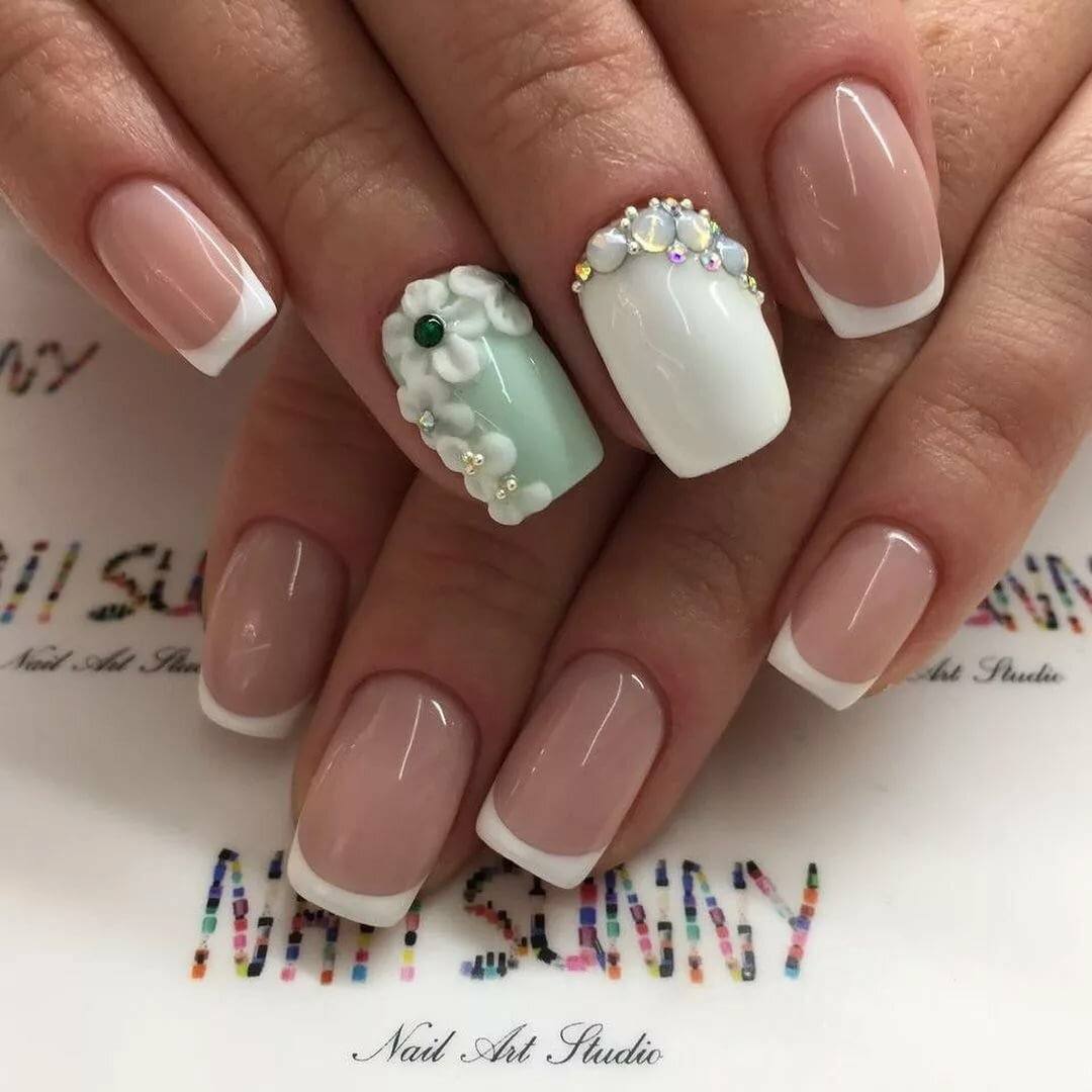 Мастера считают френч классическим свадебным маникюром. Несмотря на то, что этот дизайн встречается у каждой второй невесты, девушки все равно отдают предпочтение именно ему. Если маникюр выполнен в светлых оттенках, он подчеркнет ухоженность рук. Тем, кто не боится экспериментов, стоит попробовать сменить спокойные тона на более яркие.