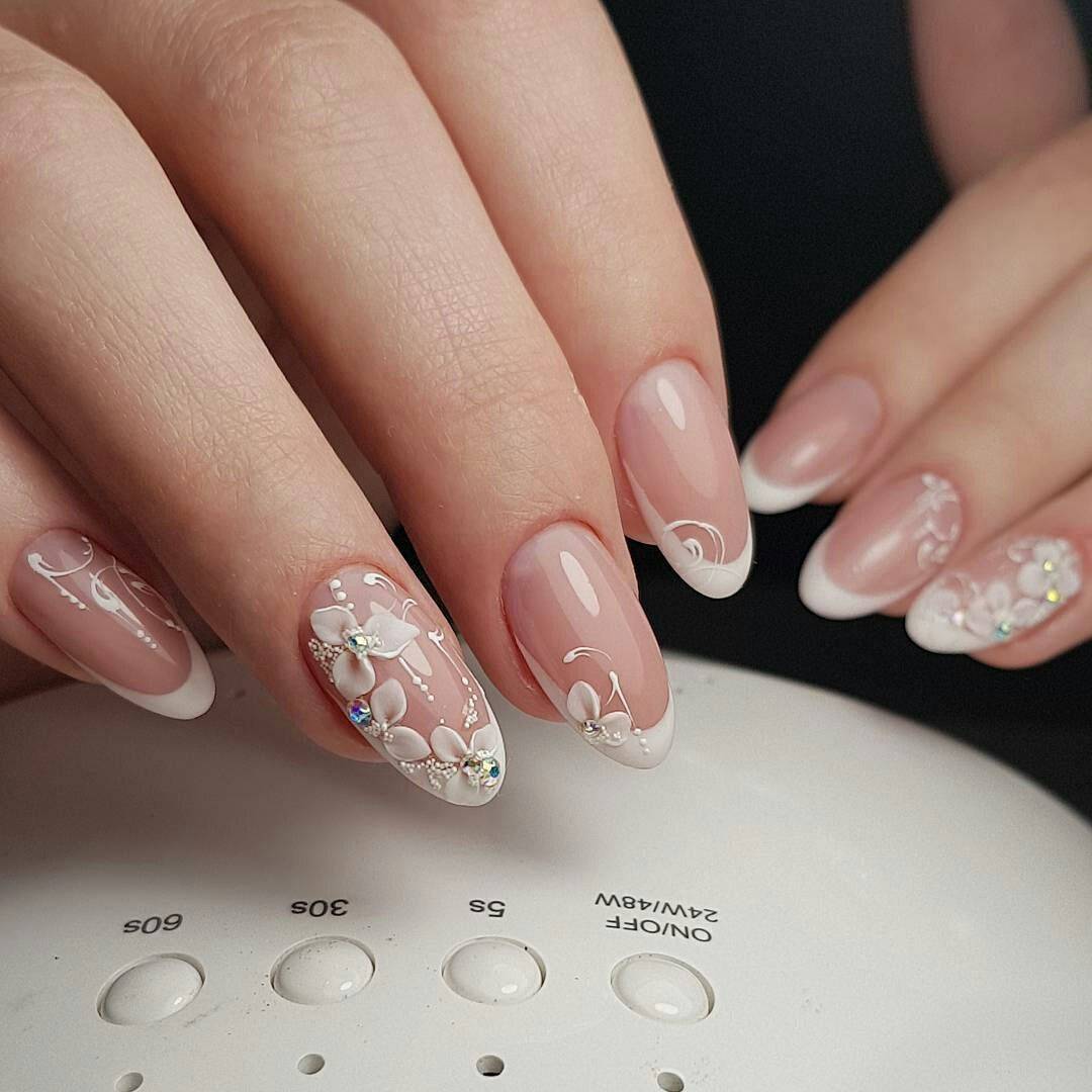 Рассмотрим предложенные варианты свадебного нейл-арта более подробно: