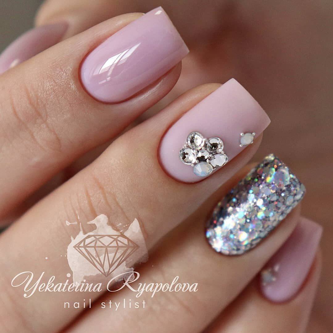 Матовые ногти со стразами