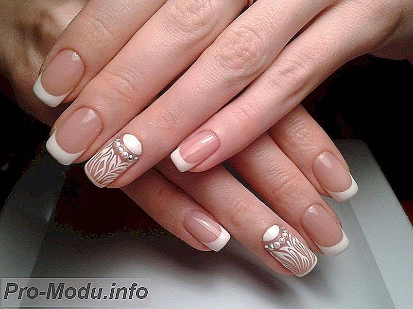Самым распространённым является французский маникюр со стразами.