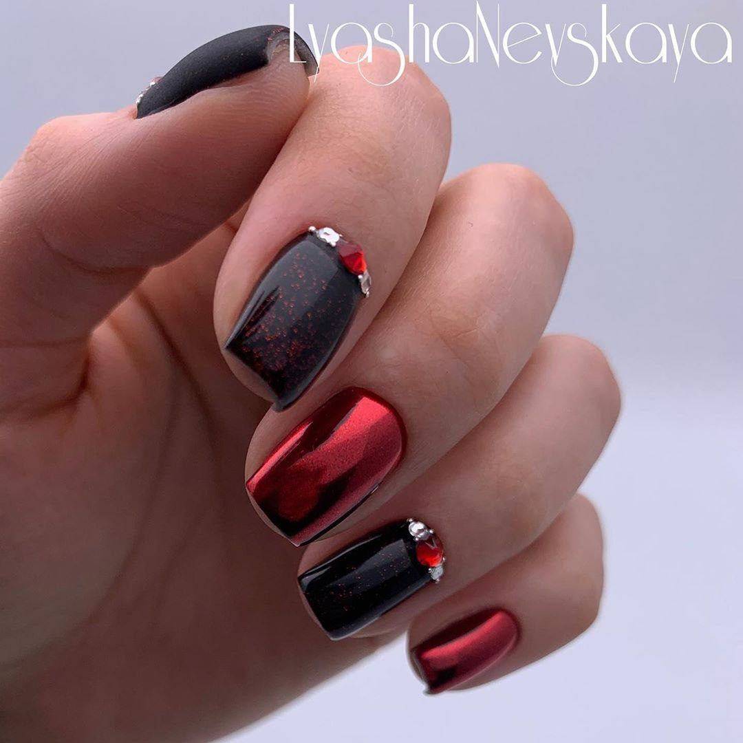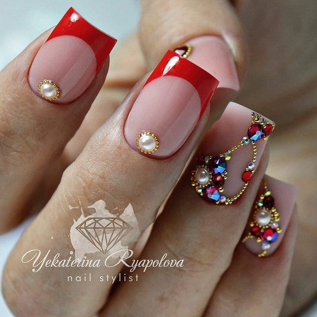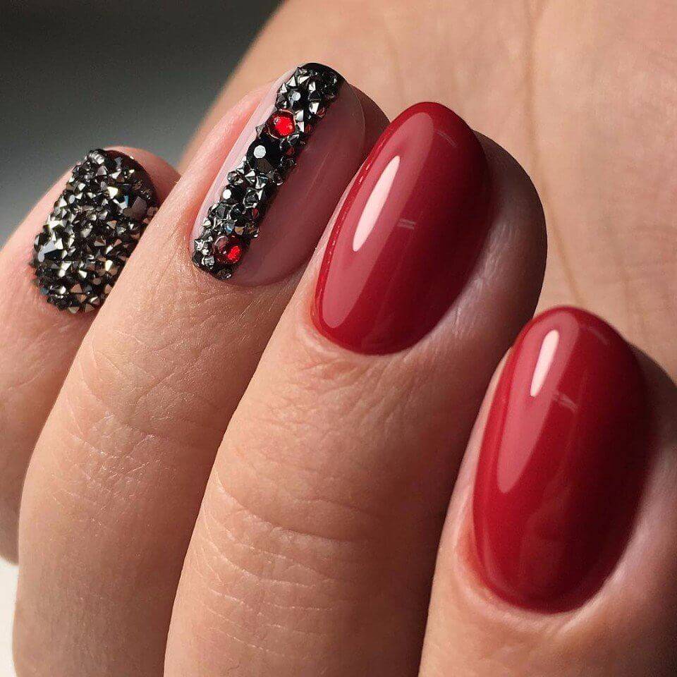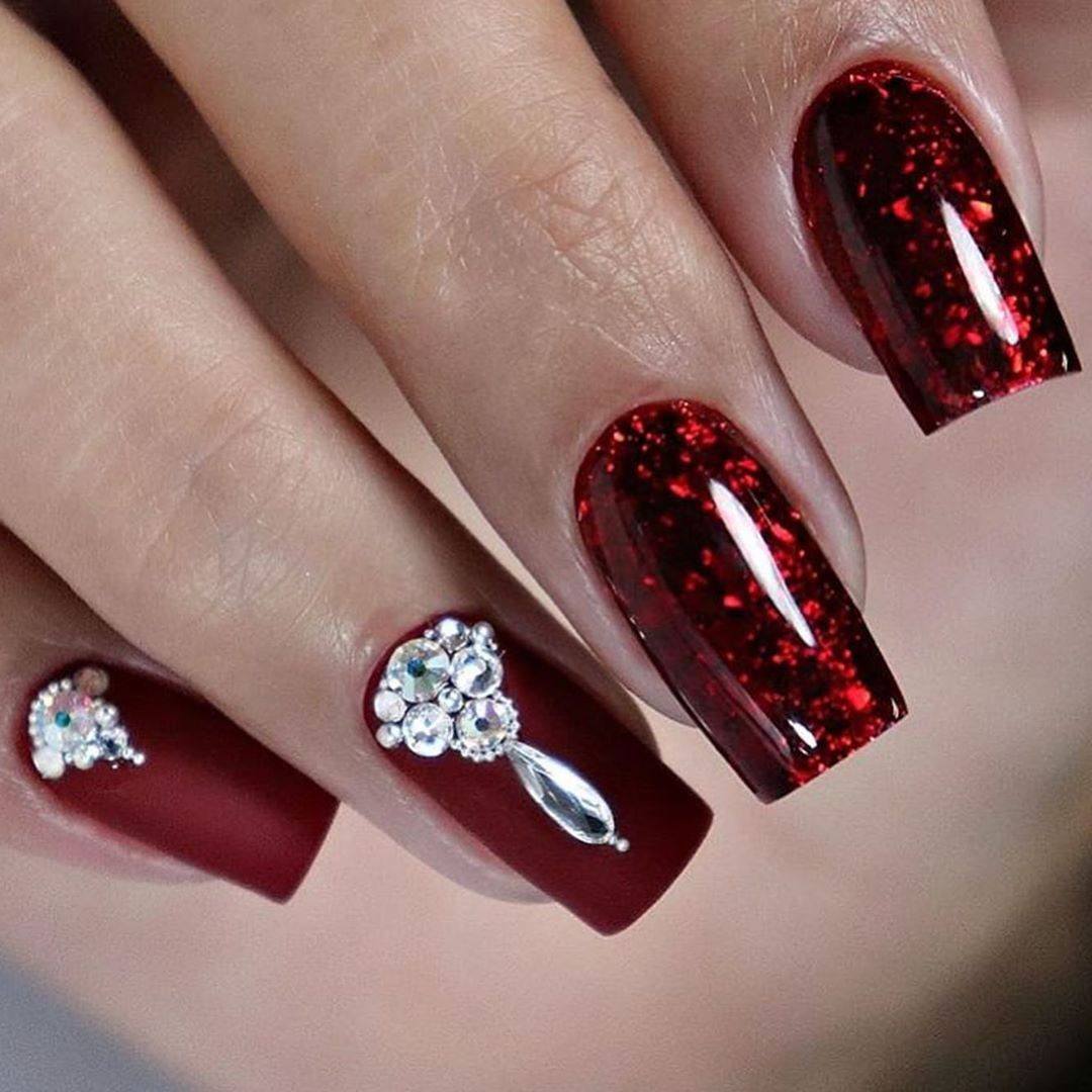 Красный маникюр со стразами 2021