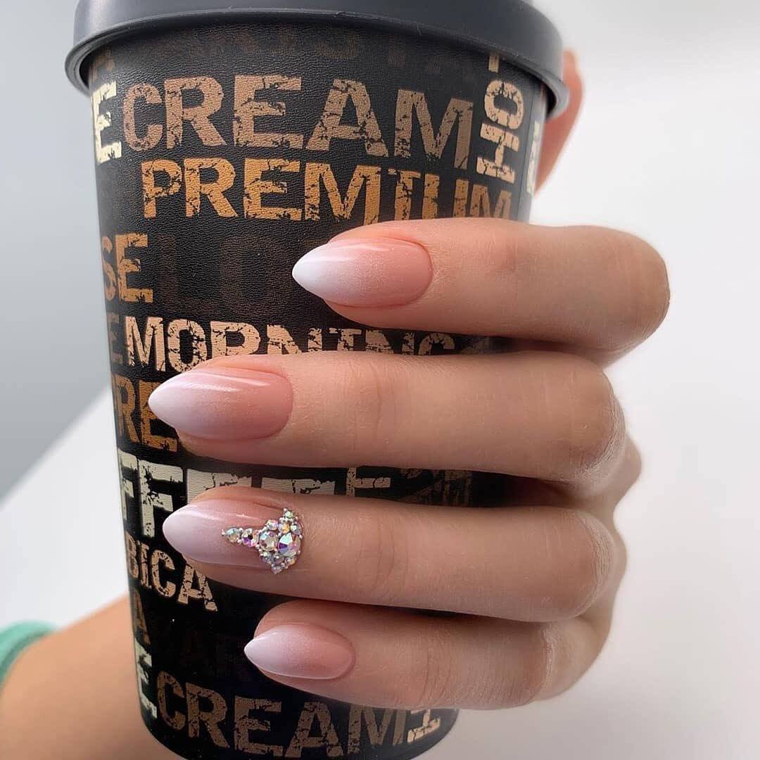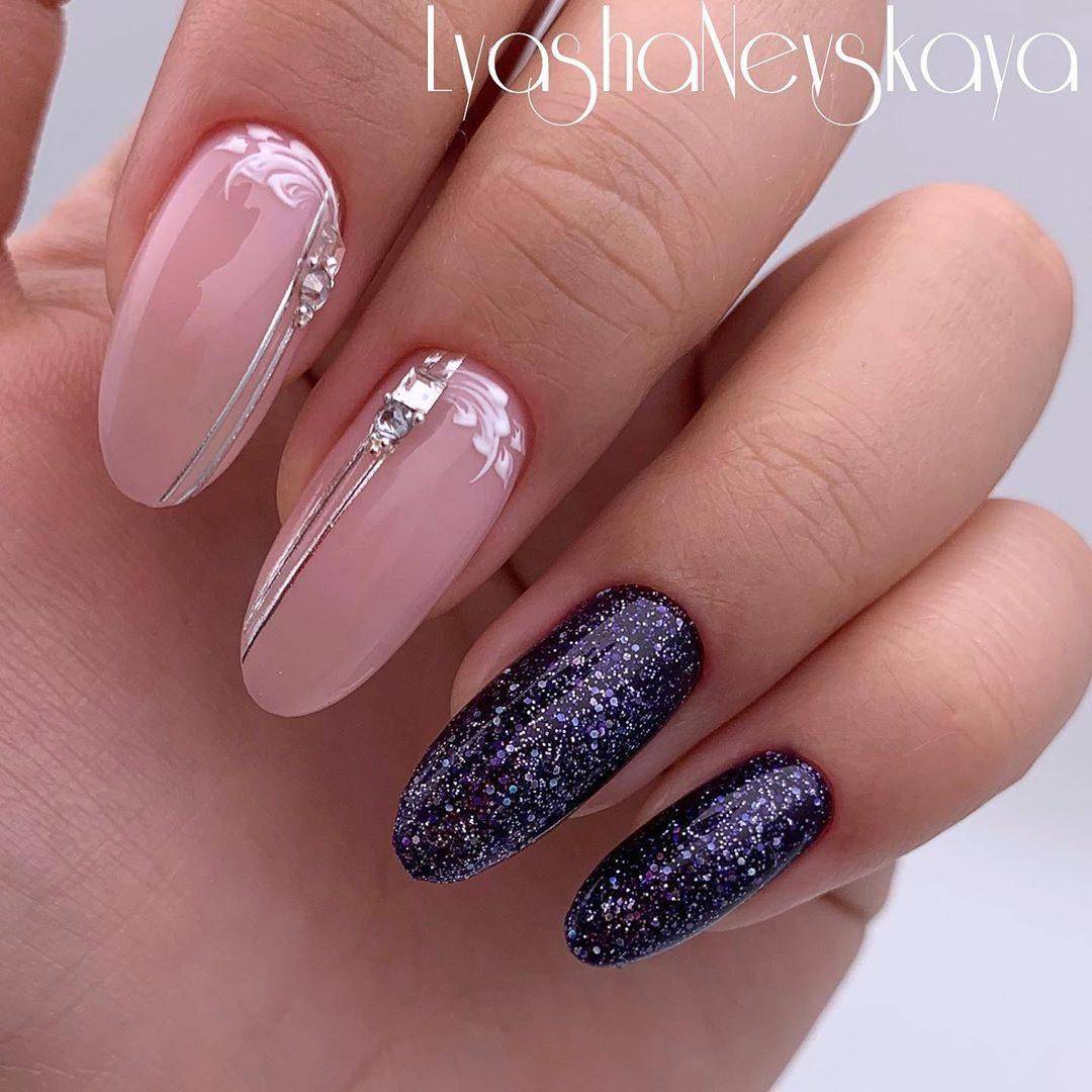 Самый трендовый маникюр включает использование и страз, и блёсток в гармоничном сочетании. Их распределяют по ноготкам постепенно для эффекта градиента.