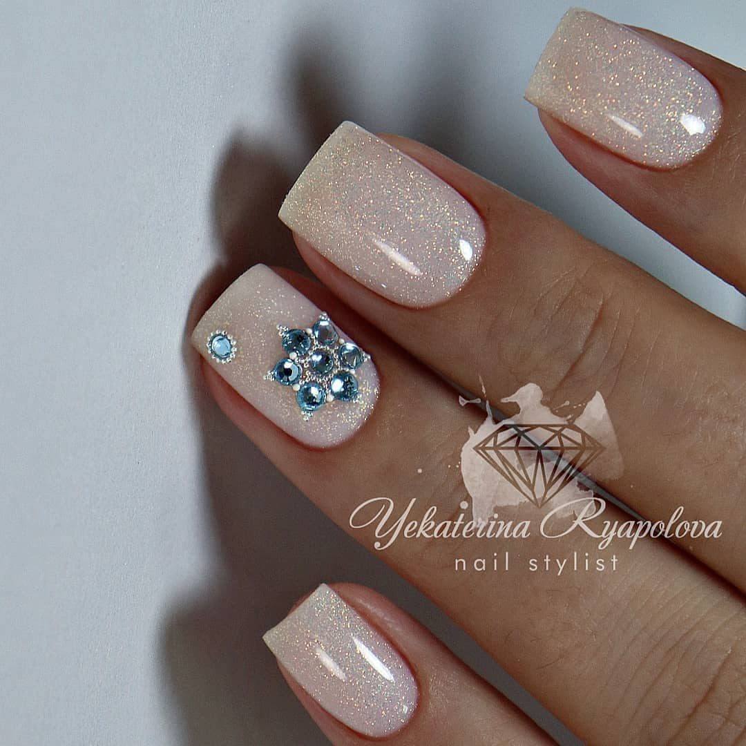 Обязательно покрывайте ногти закрепителем, чтобы ваш маникюр красиво переливался, а также продержался длительное время. Перед тем как делать маникюр для свадьбы, займитесь уходом за вашими руками. Нанесите немного скраба, чтобы убрать омертвевшие клетки кожи, а затем увлажните руки жирным кремом, дайте ему впитаться. На чистых ухоженных руках маникюр со стразами будет выглядеть еще чудеснее!